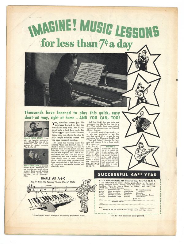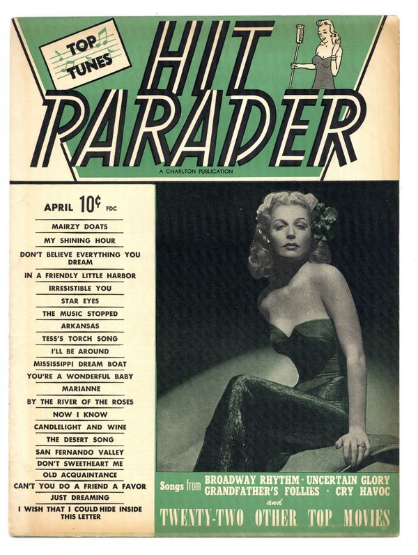 Published Apr 1944 by Charlton Publishing.$5.00Volume 2, Issue 6 - April, 1944. Goldwyn Girls photo cover. Long running magazine that features song lyrics, celebrity gossip, articles, and fan letters. This issue features songs from motion pictures such as; "Uncertain Glory" starring Jean Sullivan and Errol Flynn, "See Here, Private Hargrove" starring Robert Walker and Donna Reed, "Swing Fever" starring Kay Kyser, and many more. 8.5" x 11", 18 pages, B&W Cover price $0.10.
