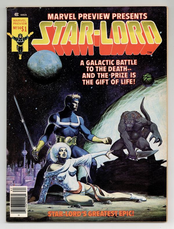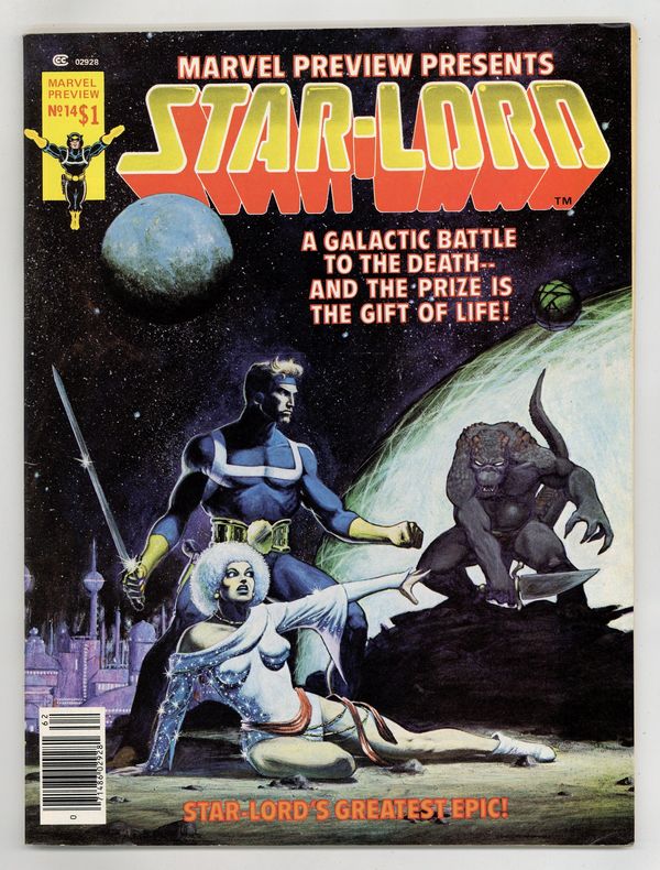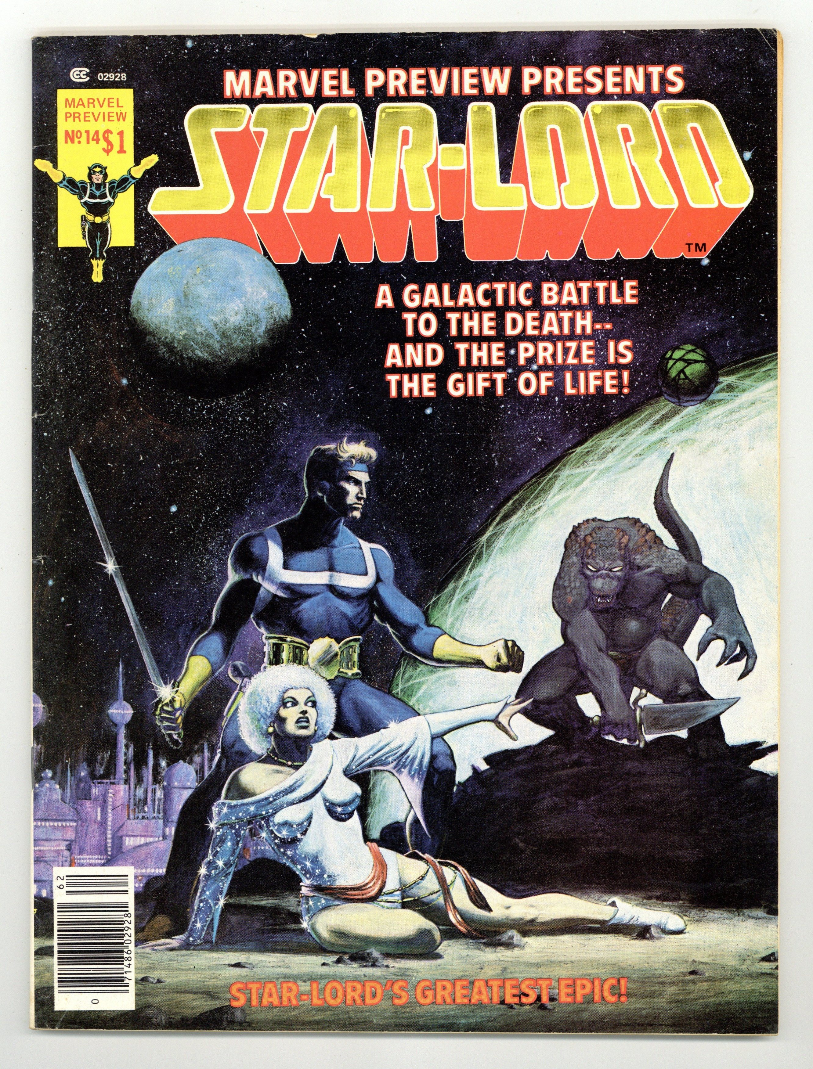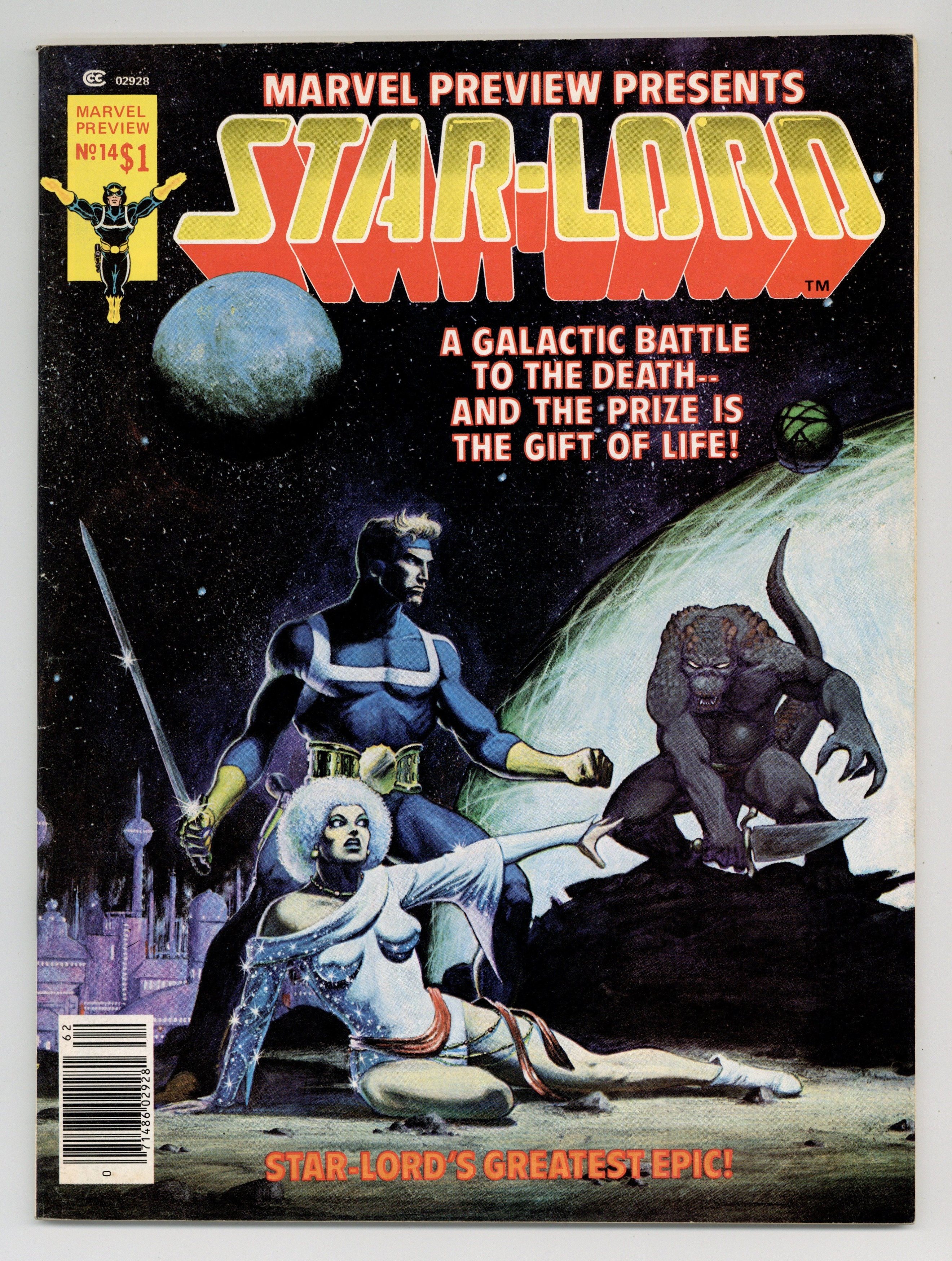 $15.50Cover art by Jim Starlin; Star-Lord article by Richard E. Marschall; A Trilateral Commission article by Trilateral; Sandsong Star-Lord story by Chris Claremont, pencils by Carmine Infantino, inks by Bob Wiacek; Logos Star-Lord story by Claremont, pencils by Infantino, inks by Wiacek; Three Kinds of Fannish Encounters article by Don and Maggie Thompson; Starworld Cyndriana story by David Anthony Kraft, art by Bob Wakelin; Detour story by Richard E. Marshall, art by Alfred Alcala; and Weirdworld promo ad penciled by John Buscema. 68 pgs. Cover price $1.00.
