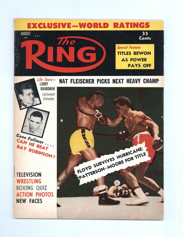 Published Aug 1956 by Rumford Press.$32.00Vol. 35 #7 - Aug. 1956. Boxing magazine. Features articles, departments, ratings, fight reports around the world and more. 8 1/4-in. x 10 3/4-in., 66 pages, B&W. Cover price $0.35.
