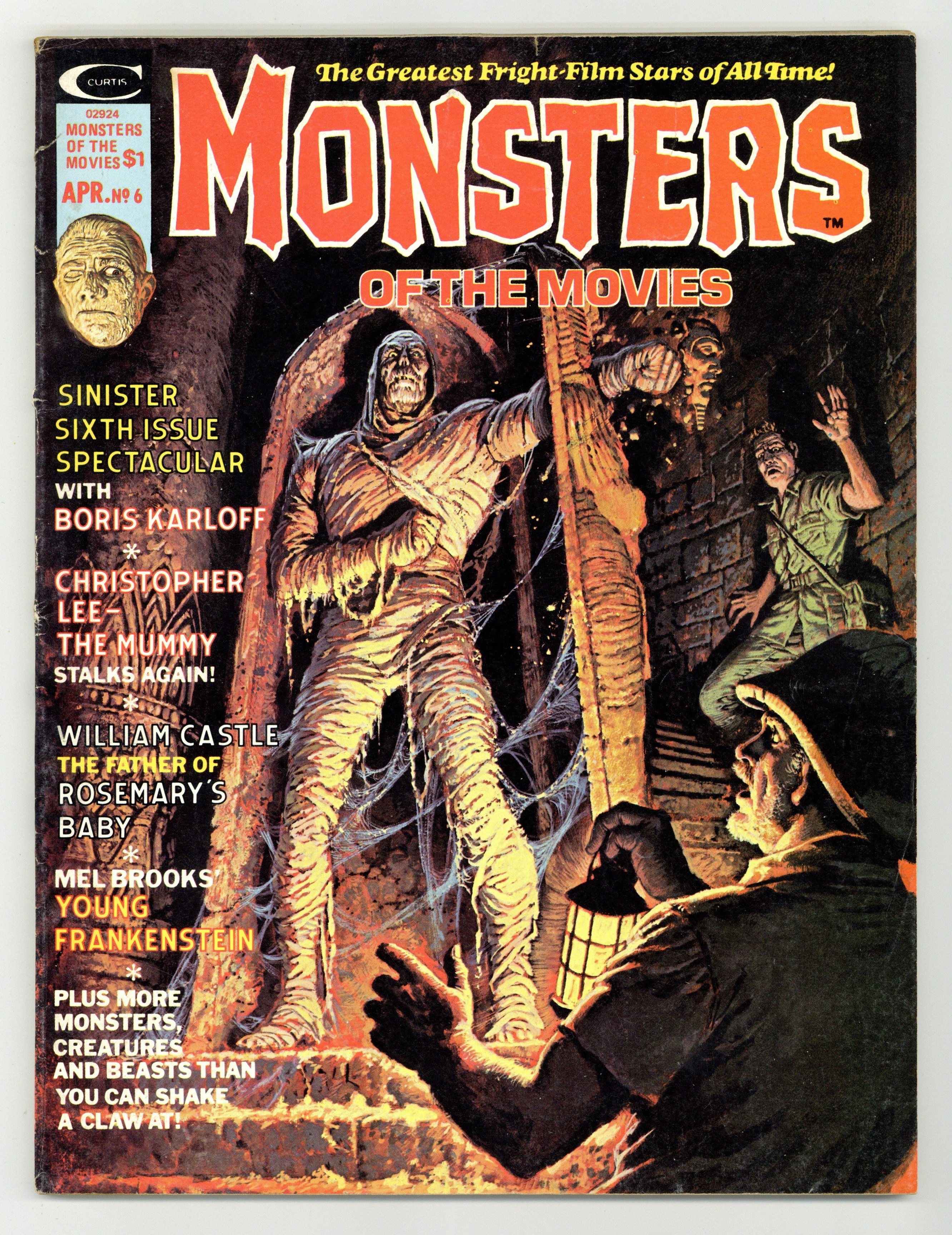 Cover by Luis Dominguez. Stories and art by Don Glut, Ron Haydock, Len Wein, John Warner, and Jim Harmon. Marvel's attempt at a Famous Monsters-type magazine featured many Marvel legends early in their careers and great painted covers. The history of The Mummy on film. Profiles of special-effects pioneer Willis O'Brien and legendary B-movie producer William Castle. A look at Mel Brooks' Young Frankenstein. Writer and filmmaker Don Glut on the history of movie serials. Terrific cover by Luis Dominguez. The Mummy Chronicles; Next Week: The Monster Strikes!; Monsterscope; The Man Who Made Monsters; William Castle: The Father of Rosemary's Baby. 8 1/2-in. x 11-in., 80 pages, B&W. Cover price $1.00.