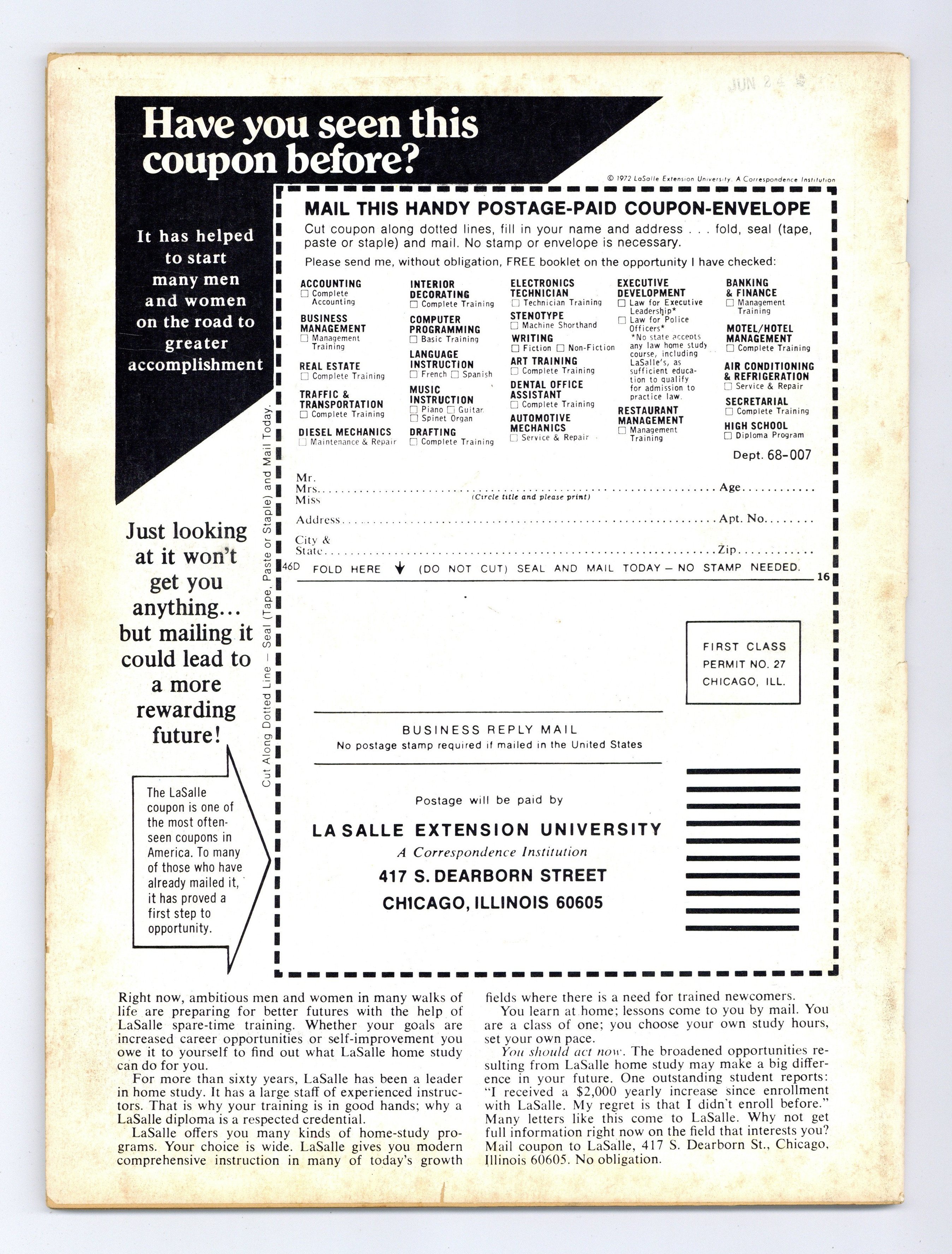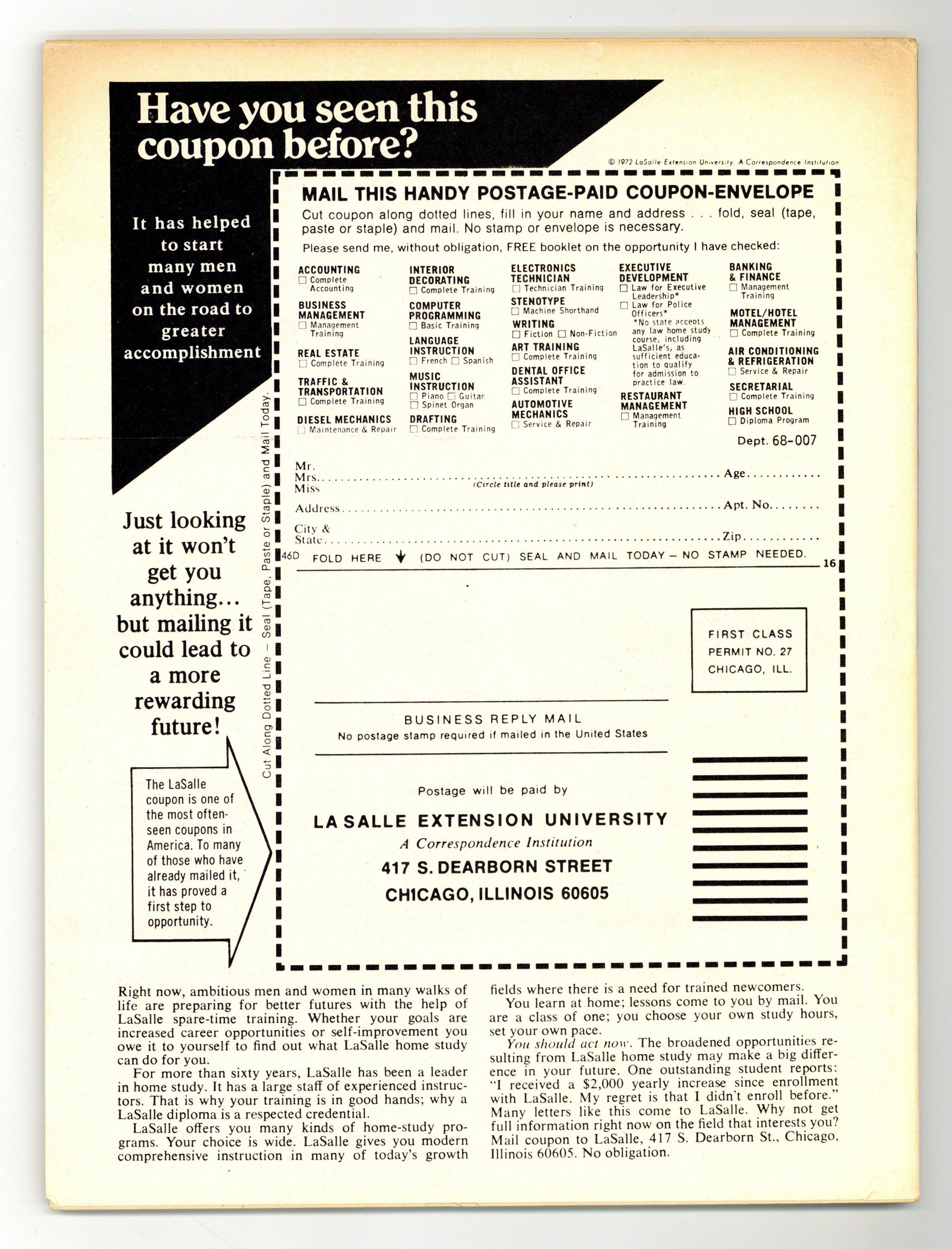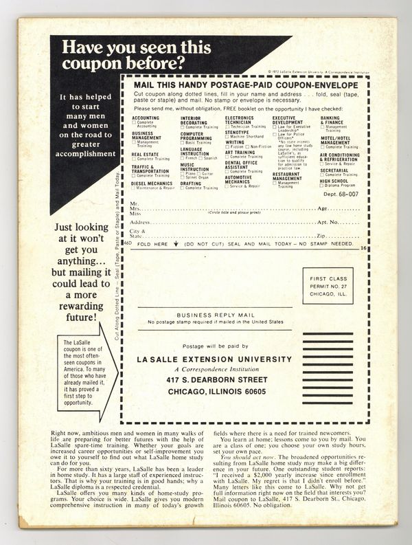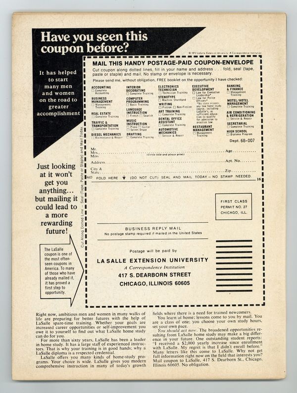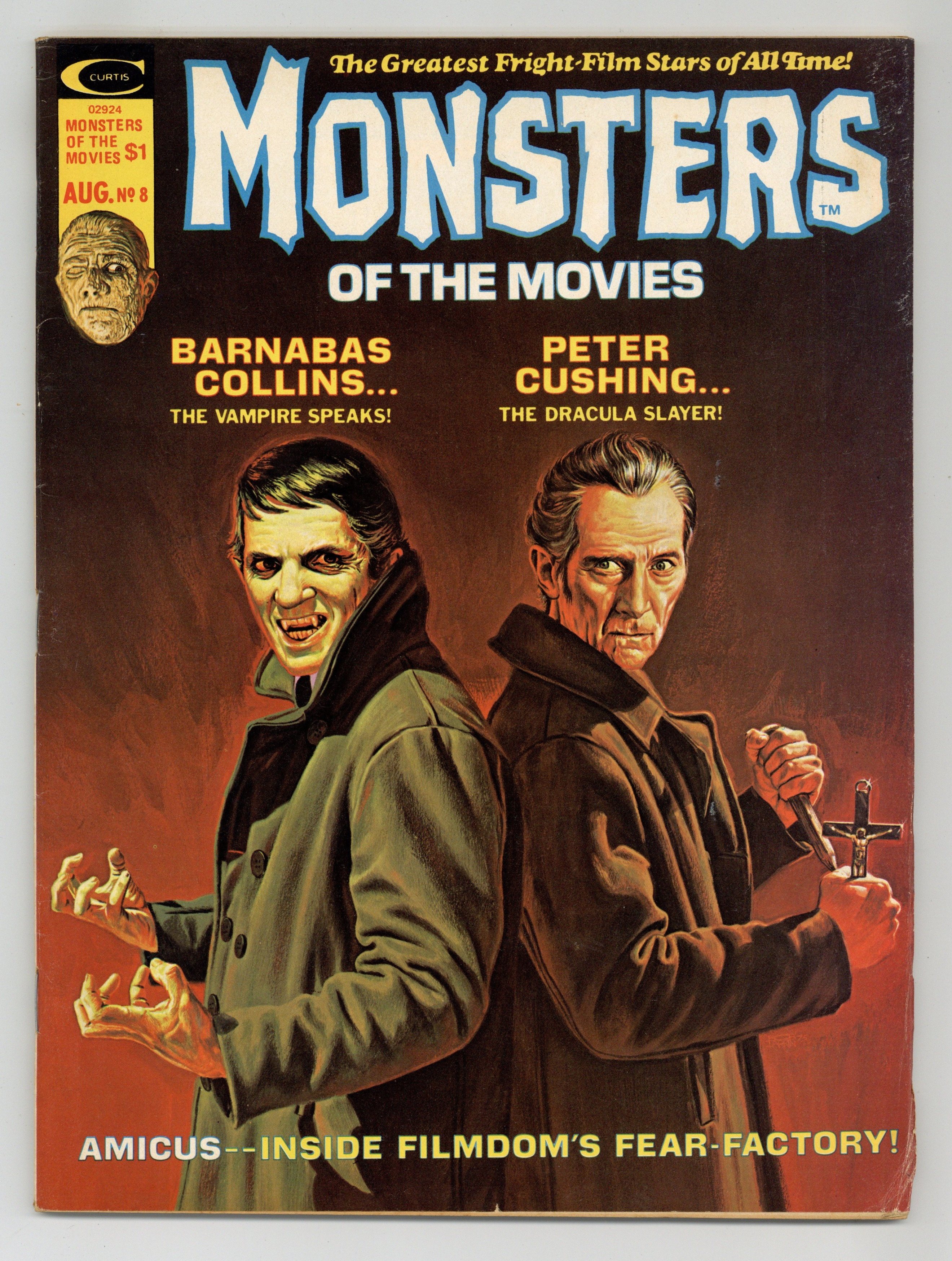 Cover by Bob Larkin. Stories and art by Chris Claremont, Doug Moench, Ron Haydock, Don Glut, Jim Harmon, Eric Hoffman, Russ Jones and John Warner. Marvel's attempt at a Famous Monsters-type magazine featured many Marvel legends early in their careers and great painted covers. The career of horror legend (and future Star Wars villain) Peter Cushing. Future X-Men writer Chris Claremont interviews actor Jonathan Frid of Dark Shadows. A profile of 1970s horror-movie studio Amicus. Plus a look at the vampire-martial arts mashup movie Legend of the Seven Golden Vampires. Peter Cushing: Thespian Terror Titan; Enter the Madhouse; Dr. Frankenstein, I Presume; Monsterscope; The Hammer Films of Cushing-Lee; Inside Amicus; Golden Vampires; Once Upon a Time There Was a Vampire. Final issue of the series. 8 1/2-in. x 11-in., 80 pages, B&W. Cover price $1.00.