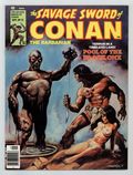 Conan stars in "The Pool of the Black One." Script by Roy Thomas, pencils by John Buscema, inks by Sonny Trinidad. Adapted from the story by Robert E. Howard. Solomon Kane and Frankenstein star in "The Dragon at Castle Frankenstein." Script by Don Glut, art by Sonny Trinidad. Howard Chaykin portfolio of Robert E. Howard characters: Conan (two pages), Red Sonja, and Solomon Kane. Fred Blosser reviews a record album featuring L. Sprague de Camp reading Conan stories in "Voice of the Blood-Stained God." "Sea Hawks: Maritime Trade and Piracy in the High Hyborian Age." Article by Robert Yaple, illustrations by Rick Hobert. Ernie Chan frontispiece. Val Mayerik cover Cover price $1.00.