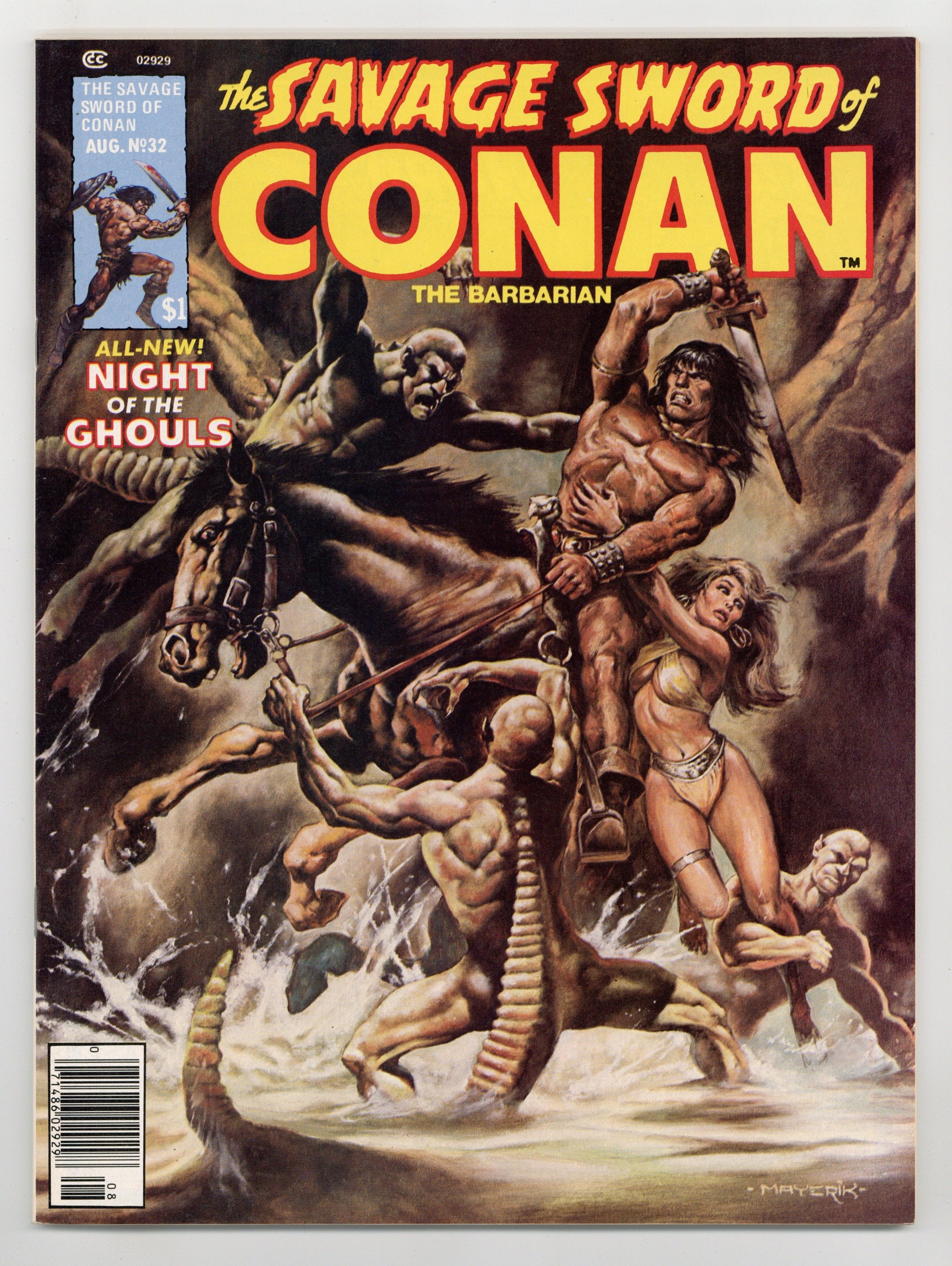 Conan stars in "The Ghouls of Yanaidar." Script by Roy Thomas, pencils by John Buscema, inks by Tony DeZuniga. Concludes the adaptation of "The Flame Knife" by Robert E. Howard and L. Sprague de Camp. Val Mayerik cover. Cover price $1.00.