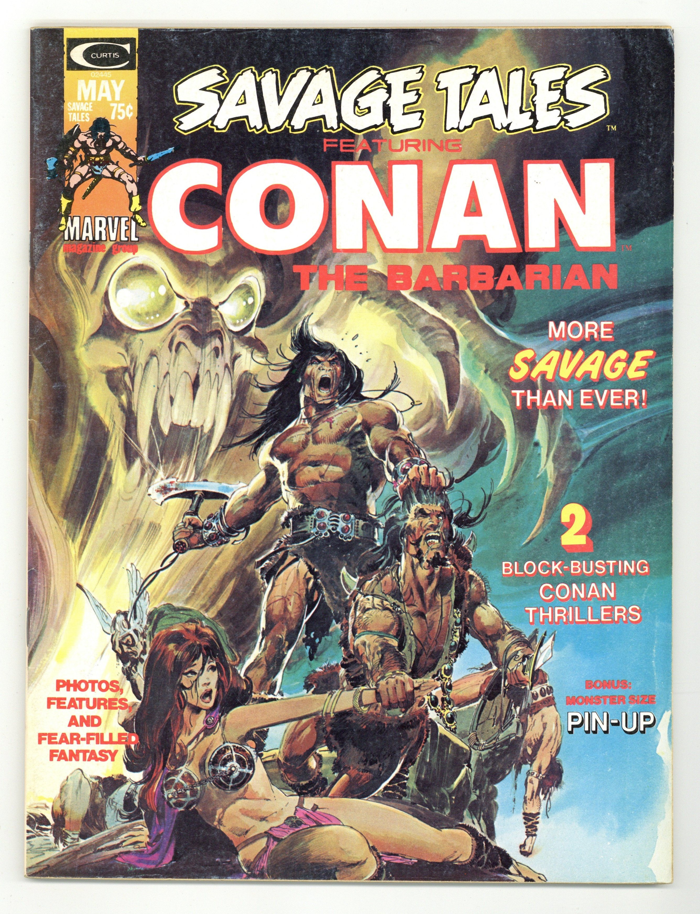 $9.60Conan stars in "Night of the Dark God" (script by Roy Thomas, pencils by Gil Kane and Neal Adams, inks by Adams, Pablo Marcos, Frank McLaughlin, and Vince Colletta). Adapted from the non-Conan story "The Dark Man" by Robert E. Howard. Reprints: "The Crusader" (script by Stan lee, art by Joe Maneely; from The Black Knight 2 in July 1955) and "The Dweller in the Dark" (script by Thomas, art by Barry Windsor-Smith; from Conan the Barbarian 12). This last story was originally intended for Savage Tales 2 before the magazine's (first) cancellation. The art was altered for its appearance in Conan 12 in order to pass the Comics Code. The story here in Savage Tales 4 is the original, unaltered version. (The muddy reprint in Conan Saga 5 is from the altered version.) Neal Adams cover painting. Cover price $0.75.