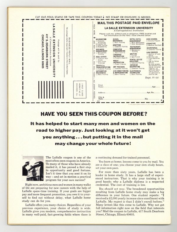 Starts Jan 26 Morbius finds himself rescuing a young woman when she's nabbed by a mysterious coven in "The Blood Sacrifice of Amanda Saint" (Story by Don McGregor, art by Rich Buckler and Pablo Marcos). In 1600s Salem, Massachusetts a young woman tries to escape a bloodthirsty mob after she's wrongfully accused of being a witch in "Witch Hunt!" (Story credits: unknown, art by Mannie Banks). An article about Bela Lugosi's other vampire roles aside from Dracula by Doug Moench. An adventurer named Simon Majors enters another dimension that serves a powerful being in "Five Claws to Tryphon" (Story by Gardner Fox, art by Jesus Blasco and John Romita). Article by Chris Claremont. First appearance of Satana, the Devil's Daughter in "Satana" (Produced by Roy Thomas and John Romita). Lou and Marie Fowler search for a secret fortune in a creepy house once owned by Lou's late uncle, but they get more than they bargained for in "At the Stroke of Midnight" (Story and art by Jim Steranko). Hodiah Twist investigates the death of a man who's been killed by vampires in "The Praying Mantis Principle" (Story by Don McGregor, art by Rick Buckler). JAD painted cover. Black and white, 74 pages. 75 cent cover price. Cover price $0.75.