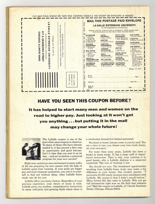 $93.00Morbius finds himself rescuing a young woman when she's nabbed by a mysterious coven in "The Blood Sacrifice of Amanda Saint" (Story by Don McGregor, art by Rich Buckler and Pablo Marcos). In 1600s Salem, Massachusetts a young woman tries to escape a bloodthirsty mob after she's wrongfully accused of being a witch in "Witch Hunt!" (Story credits: unknown, art by Mannie Banks). An article about Bela Lugosi's other vampire roles aside from Dracula by Doug Moench. An adventurer named Simon Majors enters another dimension that serves a powerful being in "Five Claws to Tryphon" (Story by Gardner Fox, art by Jesus Blasco and John Romita). Article by Chris Claremont. First appearance of Satana, the Devil's Daughter in "Satana" (Produced by Roy Thomas and John Romita). Lou and Marie Fowler search for a secret fortune in a creepy house once owned by Lou's late uncle, but they get more than they bargained for in "At the Stroke of Midnight" (Story and art by Jim Steranko). Hodiah Twist investigates the death of a man who's been killed by vampires in "The Praying Mantis Principle" (Story by Don McGregor, art by Rick Buckler). JAD painted cover. Black and white, 74 pages. 75 cent cover price. Cover price $0.75.