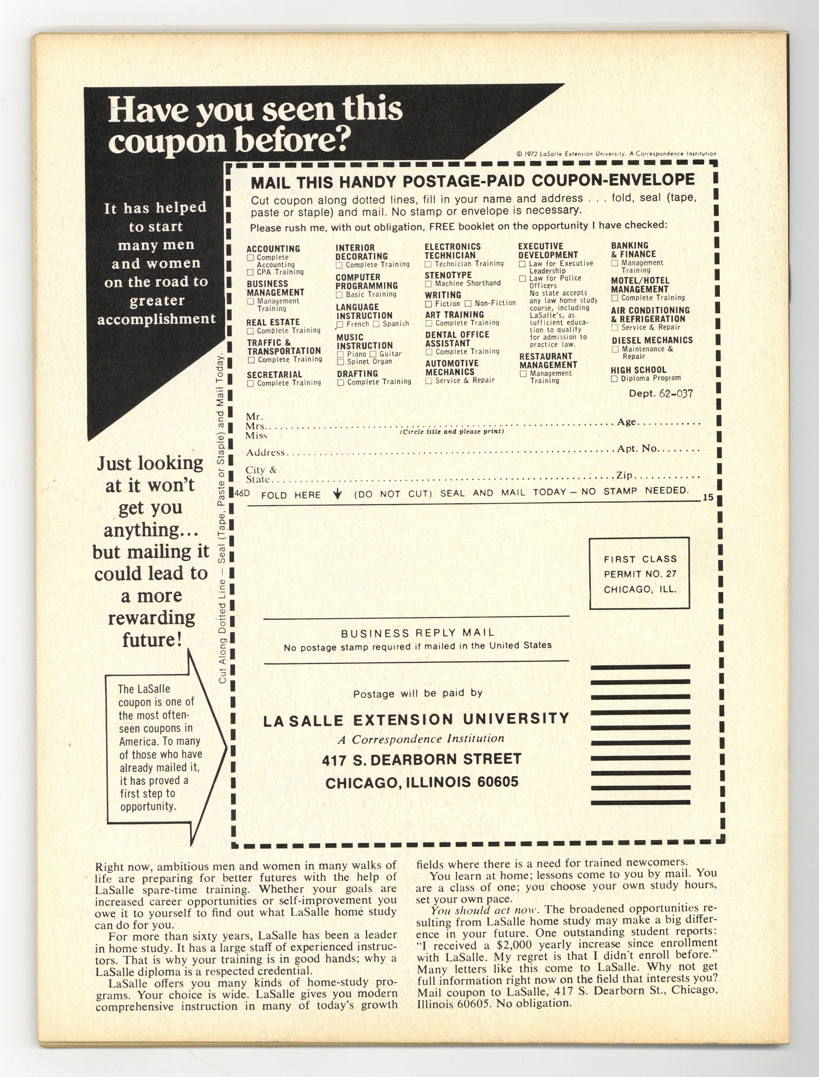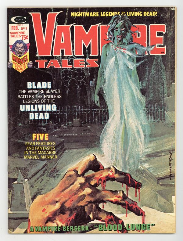 Blade the Vamprie Slayer in "Blood Moon" (script by Chris Claremont, plot by Marv Wolfman, art by Tony DeZuniga), plus "Blood Lunge" (script by Doug Moench, art by Russ Heath), "The Bleeding Time" (script by Gerry and Carla Conway, art by Virgilio Redondo, Alfredo Alcala, and Tony DeZuniga), "Blood Stalker" (script by Larry Lieber, art by Jesus Blasco), and "Shards of a Crystal Rainbow" (script by Doug Moench, art by DeZuniga). JAD painted cover. Black and white; 64 pages. Cover price $0.75.