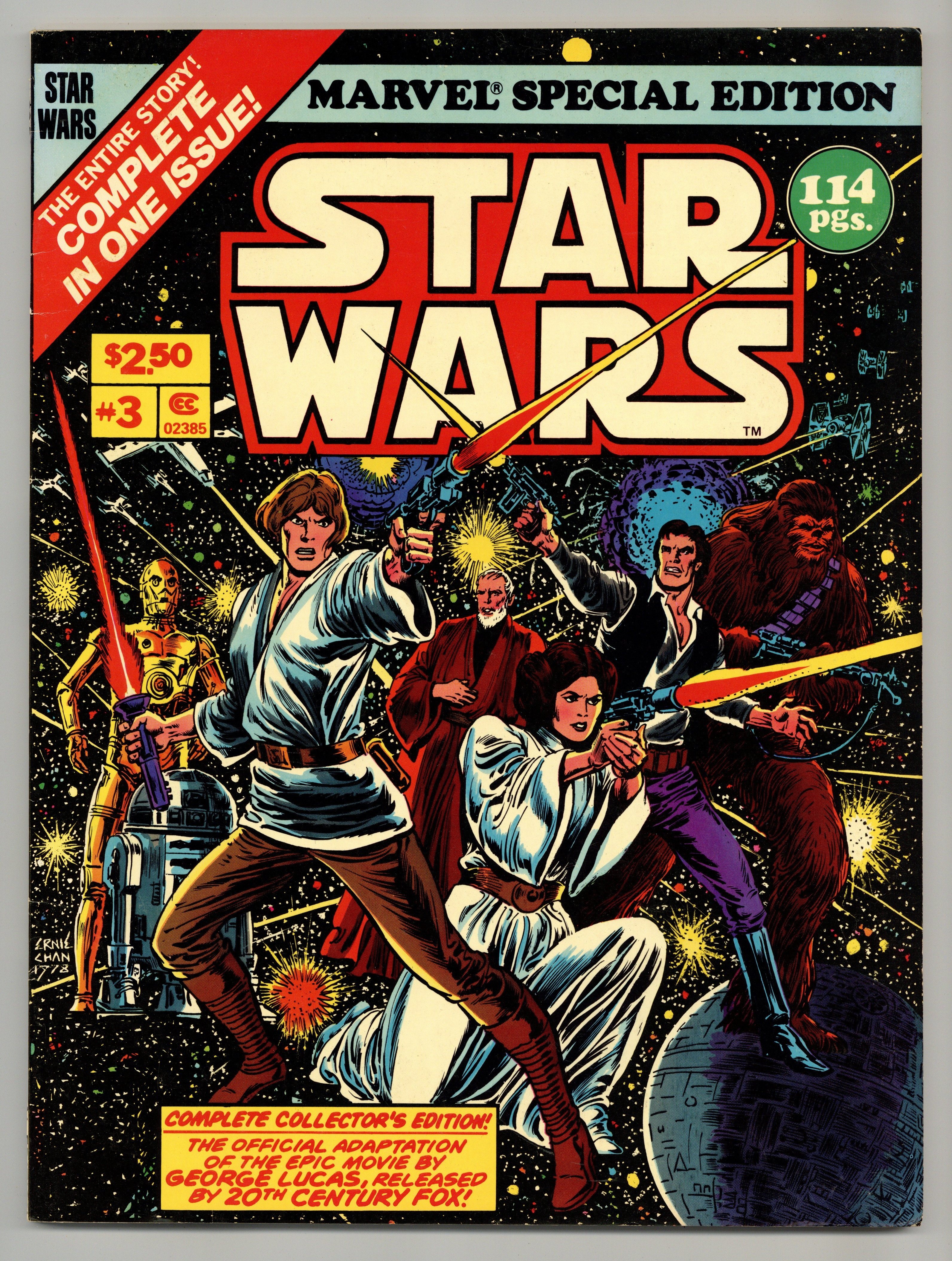 Tags: Treasury Sized Editions, Star Wars$95.00Marvel edition. Treasury-sized edition (about Life magazine-sized) featuring reprints from issues Star Wars #1-6 (and Marvel Special Edition Star Wars #1-2 reprint), 114 pages, 1978, $2.50 original cover price. Cover price $2.50.