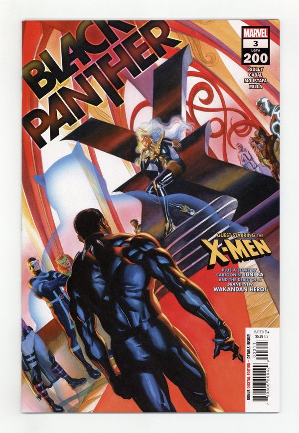 Written by John Ridley. Art by Juan Cabal. Cover by Alex Ross. T'CHALLA VS. THE X-MEN OF MARS! With assassins closing in and Wakanda's faith in him shaken, T'Challa goes to visit Storm on the newly terraformed Mars. But this will not be a happy reunion, as T'Challa has ulterior motives for his visit. And back home, Shuri discovers who is behind the attacks on Wakanda's secret agents, a revelation that will change everything… 52 pages, full color. RATED T+ Cover price $5.99.