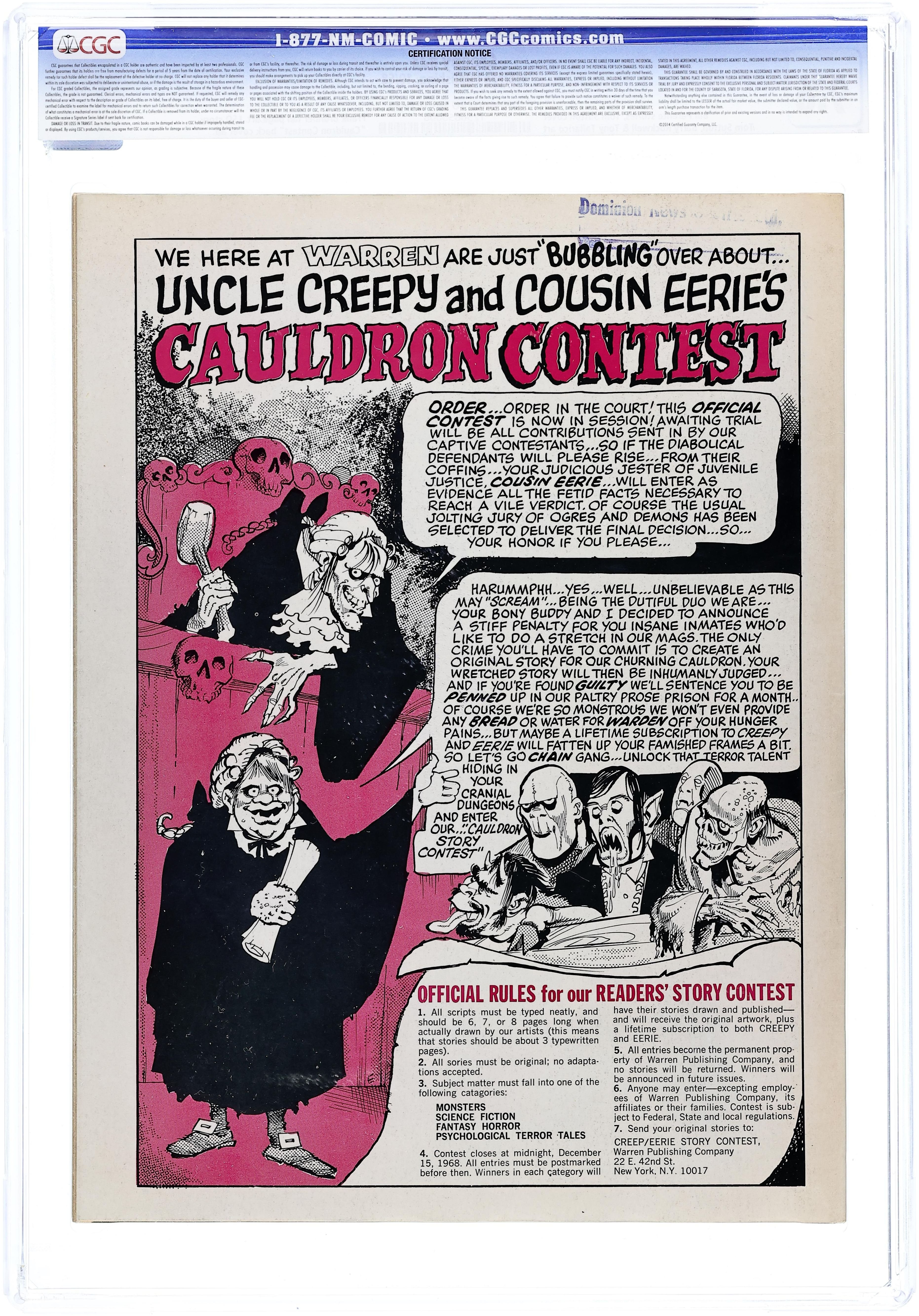 Stories in this issue include: Way Out by James Haggenmiller and Donald Norman; Gargoyle by Archie Goodwin, Roy G. Krenkel, and Angelo Torres; Jack Knifed by Bill Parente and Barry Rockwell; Quick Change by Bill Parente and Tom Sutton; Rude Awakening by Archie Goodwin and Alex Toth; and Cat Nipped by Bill Parente, Bill Fraccio, and Tony Tallarico. Cover art by Tom Sutton. Cover price $0.40.