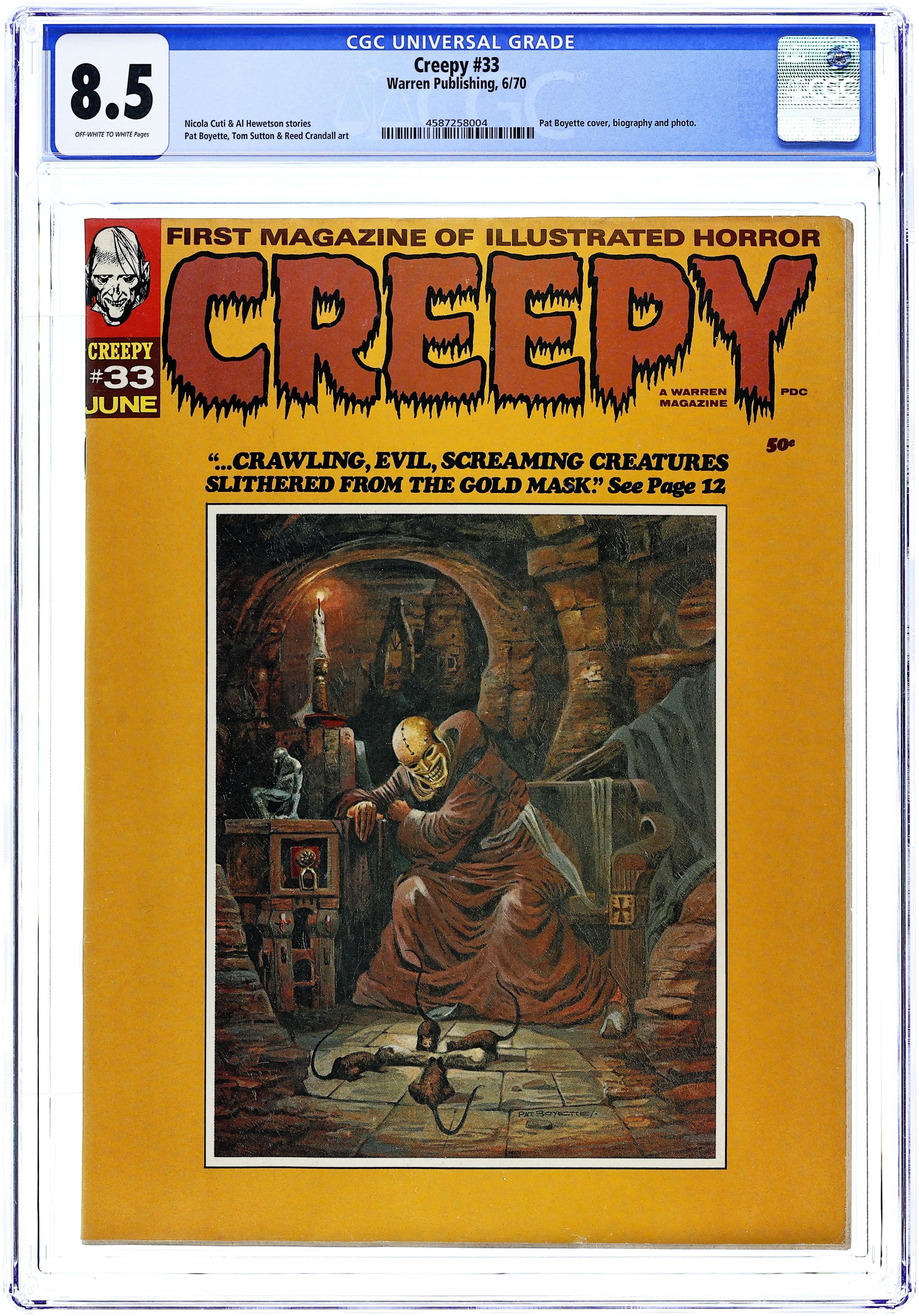 Stories in this issue include: One too Many by Buddy Saunders (owner of Lone Star Comics) and William Barry; Royal Guest by Pat Boyette; Blue Mum Day by R. Michael Rosen and Reed Crandall; Dr. Jekyll was Right by Bill Warren, Bill Fraccio, and Tony Tallarico; I'm Only in it for the Money by Al Hewetson and Juan Lopez; The Full Service! by Nicola Cuti and Jack Sparling; and Boxed In! by Tom Sutton. Cover art by Pat Boyette. Cover price $0.50.