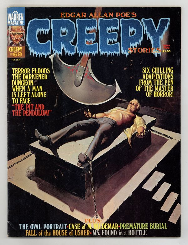 $21.00This special Edgar Allan Poe issue includes the following stories: The Pit and the Pendulum by Rich Margopoulos and Jose Ortiz; Premature Burial by Rich Margopoulos and Vicente Alcazar; The Fall of the House of Usher by Rich Margopoulos and Martin Salvador; The Oval Portrait by Rich Margopoulos and Richard Corben; Ms. Found in a Bottle! by Rich Margopoulos and Leo Summers; and Facts in the Case of M. Valdemar by Rich Margopoulos and Isidro Mones. Cover art by Ken Kelly. Cover price $1.00.