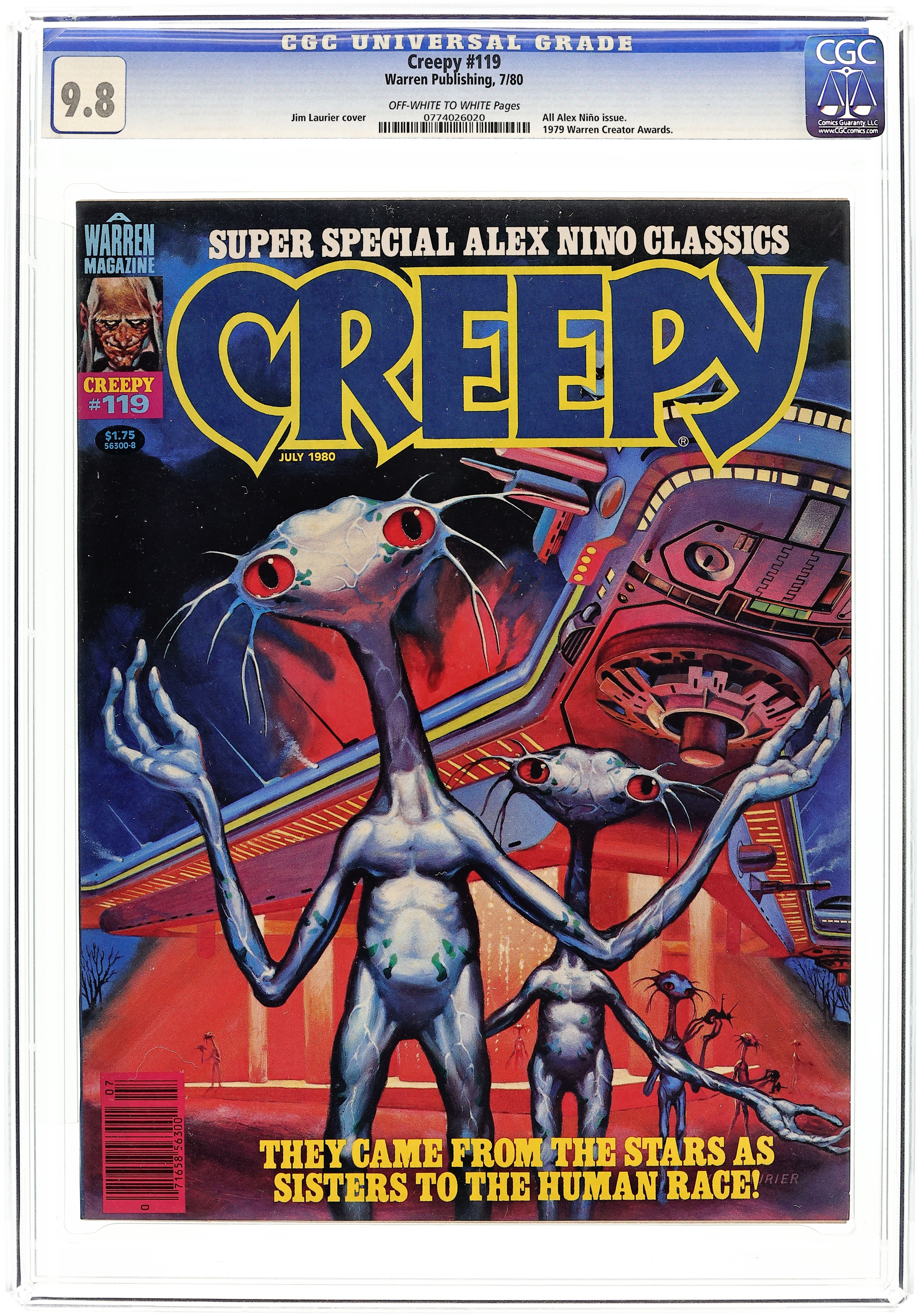 Stories in this issue include the following reprints: A Boy and his Thing by Bill DuBay and Alex Nino; Keep Kool by Bob Toomey and Alex Nino; Always Leave 'em Laughing by Len Wein and Alex Nino; Sisters by Bill DuBay and Alex Nino; Backwaters and Timing Circles by Budd Lewis and Alex Nino; and Alien Strain by Bill DuBay and Alex Nino. Includes the 1979 Warren Awards. Cover art by Jim Laurier. Cover price $1.75.
