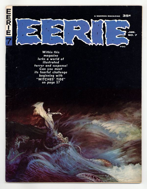 Stories in this issue include: Witches' Tide by Eugene Colan and Archie Goodwin; It that Lurks by Dan Adkins and Archie Goodwin; Hitchhike Horror by Hector Castellon and Archie Goodwin; The Defense Rests by Johnny Craig; Fly by Steve Ditko and Archie Goodwin; The Quest by Donald Norman and Archie Goodwin; and Cry Fear Cry Phantom by Jerry Grandenetti and Archie Goodwin. Cover art by Frank Frazetta. Cover price $0.35.
