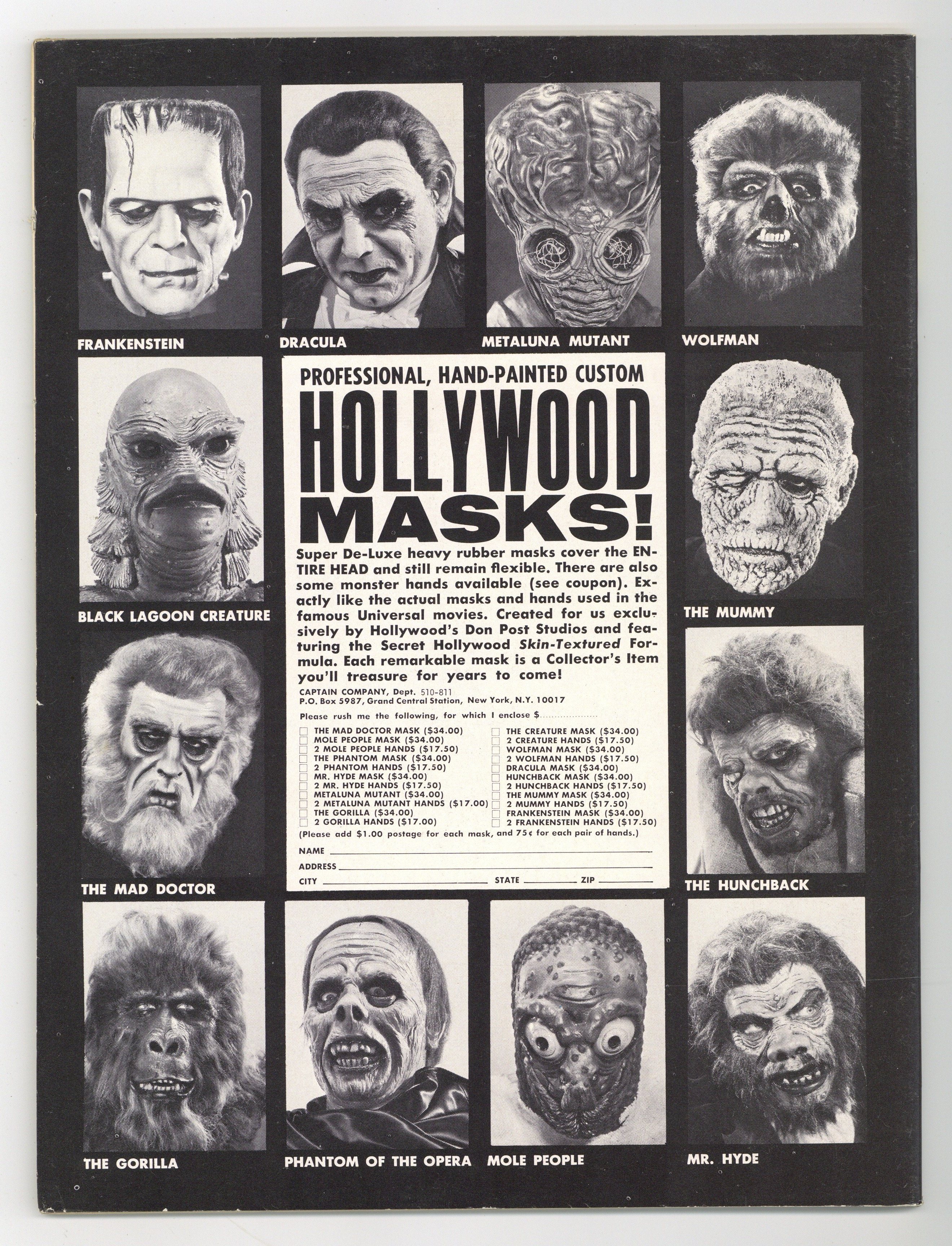 Stories in this issue include: Witch Hunt by Joe Orlando and Archie Goodwin; To Slay a Dragon by Jeff Jones and Archie Goodwin; The Mummy by Wallace Wood (based on the classic Universal movie); Berenice by Jerry Grandenetti and Archie Goodwin; The Blood Fruit by Johnny Craig; The Monster from One Billion B.C. by Tom Sutton; Big Change by Larry Woromay and Ron Whyte; and First Blood by Eugene Colan and Archie Goodwin. Cover art by Joe Orlando. Cover price $0.40.