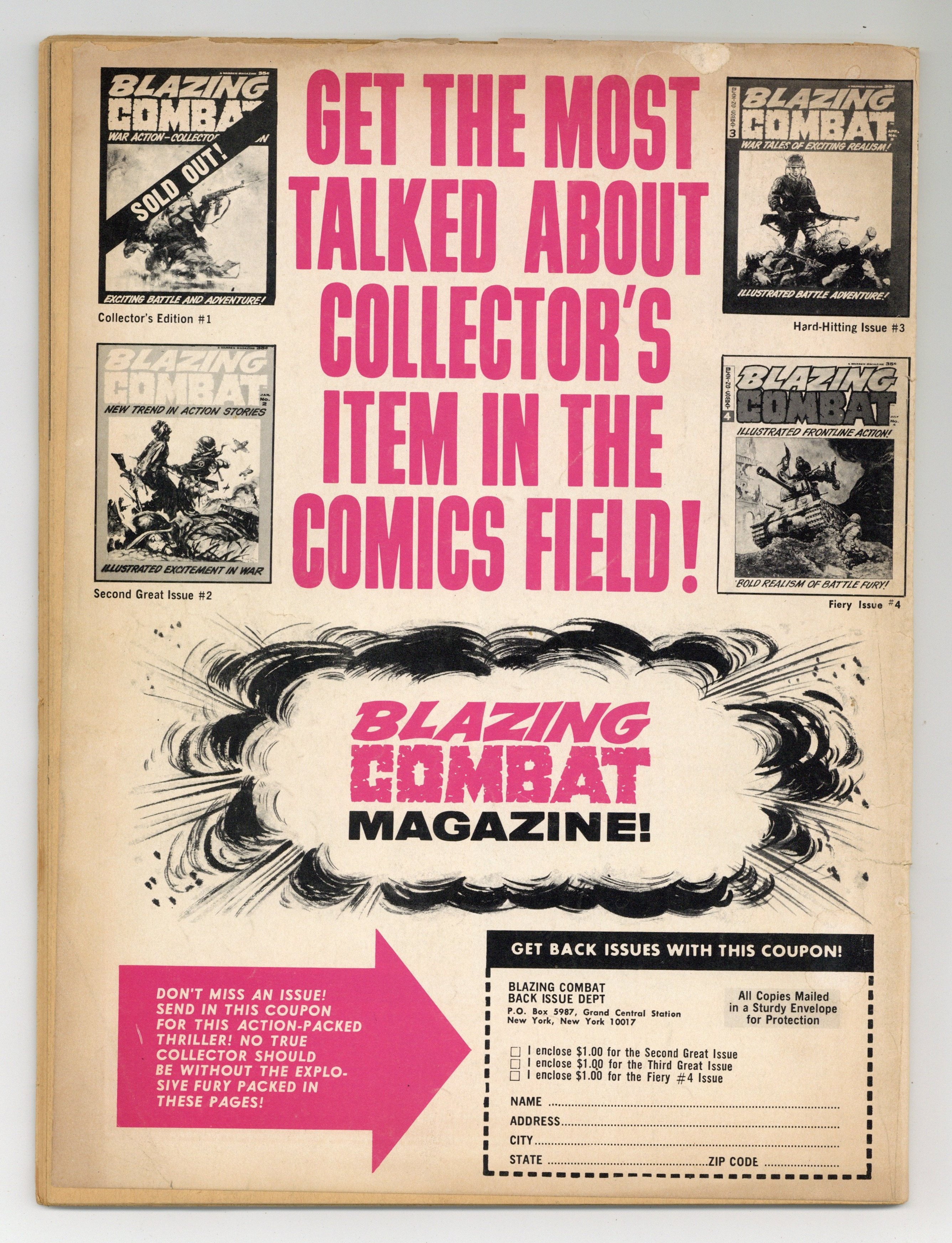 Stories in this issue include: The Final Solution by Raymond Marais, Bill Fraccio, and Tony Tallarico; The Mummy Stalks by Archie Goodwin and Reed Crandall; To Save Face by Bill Parente and Ernie Colon; Dressed to Kill by Bill Parente and Tom Sutton; Demon Sword by Archie Goodwin and Steve Ditko; and The Death of Halpin Frayser by Craig Tennis and Frank Bolle (from the story by Ambrose Bierce). Includes letter by comic book writer and CBG columnist Tony Isabella. The fan page debuts future comic book writer Bill Mantlo and SF artist Michael Whelan. Cover art by Tom Sutton (miscredited to Barry Rockwell). Cover price $0.40.
