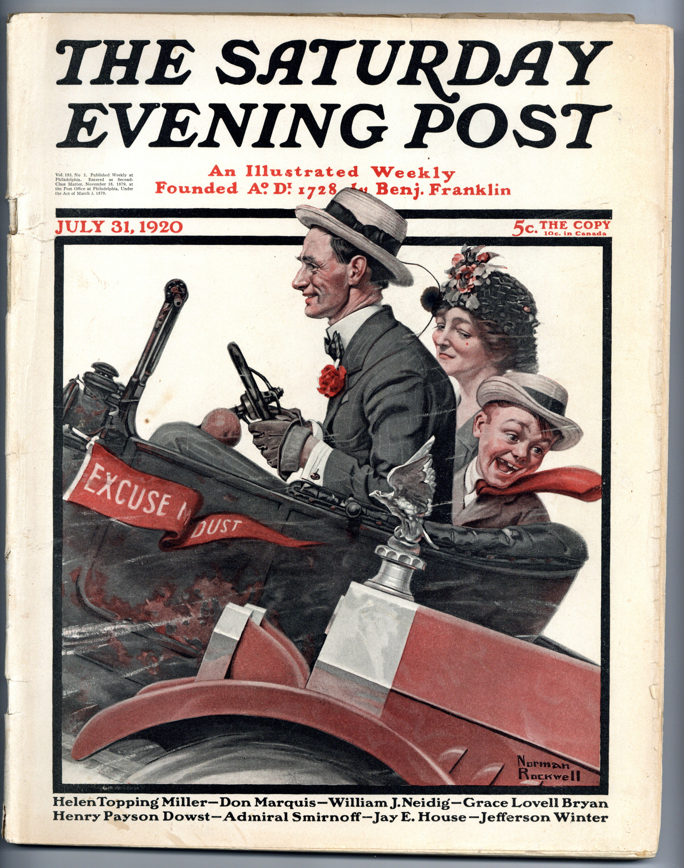 Vol. 193 #5 - July 31, 1920. The classic magazine featuring current event articles, editorials, human interest pieces, humor, illustrations, a letter column, poetry, single-panel gag cartoons, and stories by the leading writers of the time. Article on the last days of the Russian Royal Family. Article on Russian Admiral during the Russian Revolution. Fiction by Don Marquis, Helen Topping Miller and many others. Interior illustrations by George Wolfe, Weston Taylor, Henry Soulen, H.D. Koerner, May Preston, Ray Rohn, James Preston, F.R. Gruger, Arthur Brown. Cover by Norman Rockwell. Ad for Hart Schaffner & Marx by Edward Penfield. Two-page ad for Westinghouse by McClelland Barclay. 11 1/4-in. x 14 1/4-in., 170 pages, B&W. Cover price $0.05.