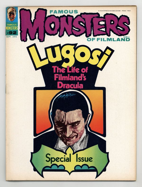 $22.00This special Bela Lugosi issue of FM includes the following features: a review of Lugosi's life; Dracula filmbook; "Public Vampire #1" reprint; "Great Lugosi Mystery!" reprint; "Professor Gruebeard"; "Graveyard Examiner": and more. The cover painting of Lugosi is by Barry Morgan. Cover price $0.75.