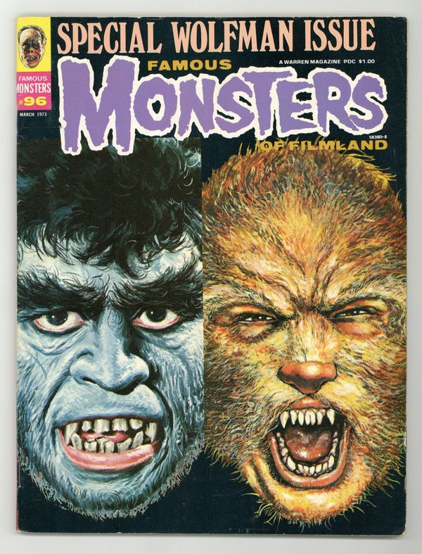 Features in this issue include: reminiscence by Forry regarding the death of Lon Chaney; synopses of Twins of Evil, Frankenstein Meets the Wolfman, and Hands of the Ripper; preview of Scars of Dracula; and "The Critics Crypt" (featuring book reviews); and more. The cover combines two previous cover paintings: Mr. Hyde from the 1967 Yearbook and the werewolf from issue #41. Cover price $1.00.