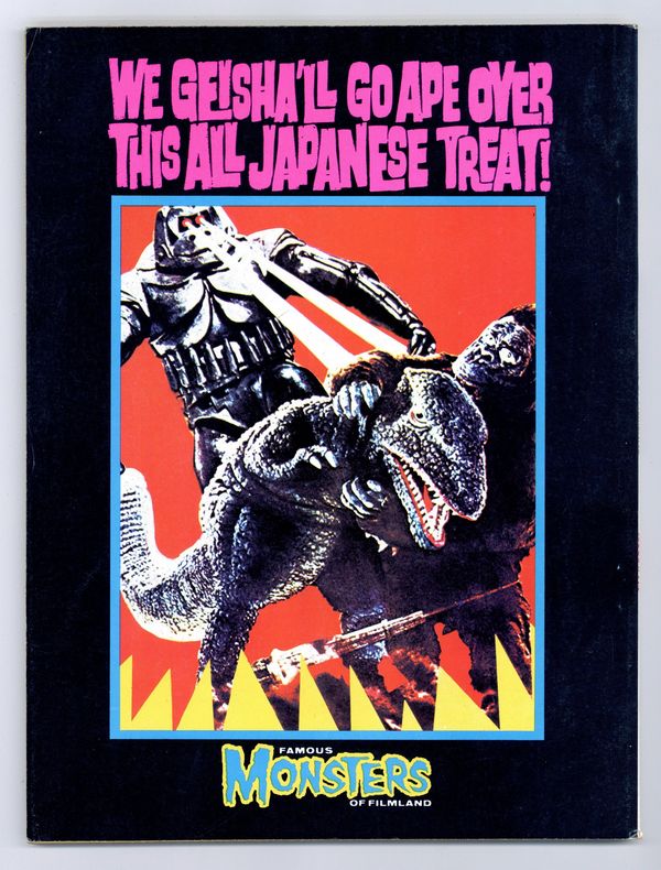 $53.00Features in this issue include: preview of Frankenstein Conquers the World; synopsis of King Kong vs. Godzilla; reviews of The Return of Gidrah and Destroy all Monsters; Godzilla filmbook; and more. Cover painting of Godzilla battling Rodan is by Ken Kelly. Cover price $1.25.