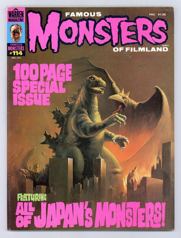 Features in this issue include: preview of Frankenstein Conquers the World; synopsis of King Kong vs. Godzilla; reviews of The Return of Gidrah and Destroy all Monsters; Godzilla filmbook; and more. Cover painting of Godzilla battling Rodan is by Ken Kelly. Cover price $1.25.