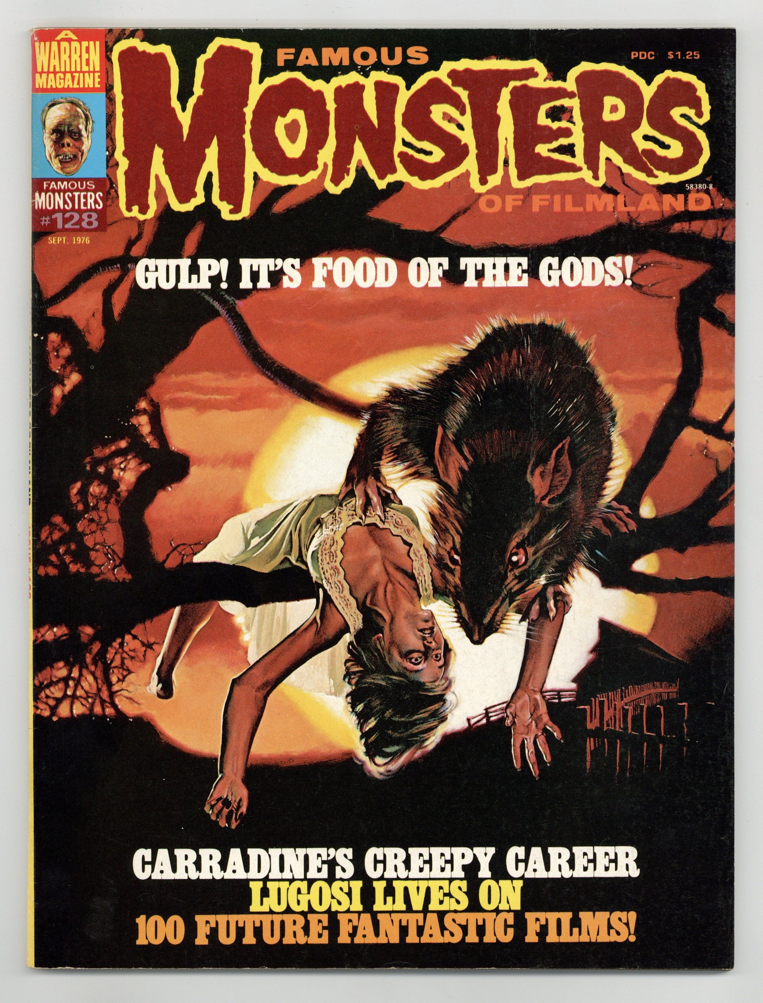 Features in this issue include: birthday tribute and bio of John Carradine; review of Revenge of the Zombies; mini filmbook and background feature on Jaws; Frieda Inescort obituary; Food of the Gods preview; and more. Uncredited cover painting depicts action from The Food of the Gods. Cover price $1.25.