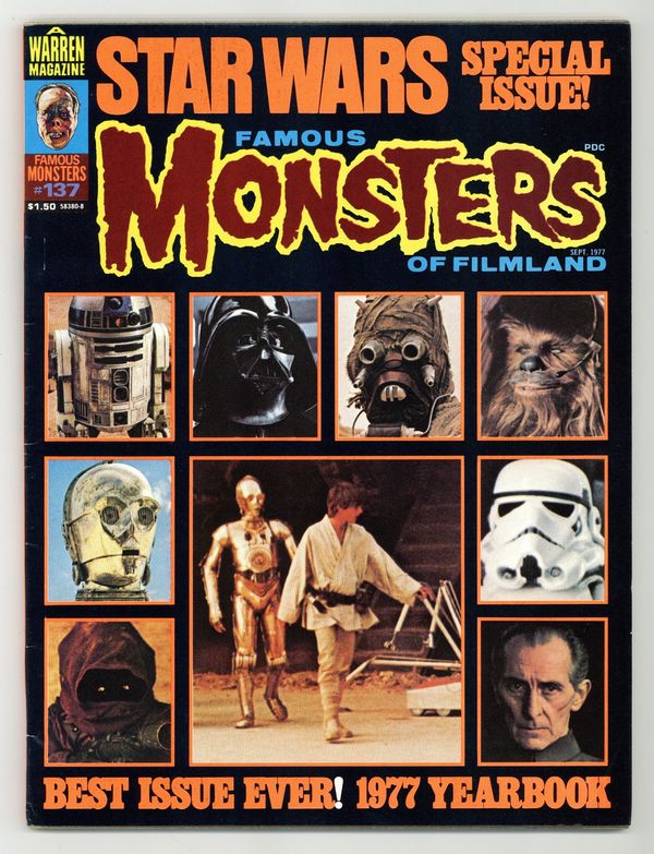 $18.00Features in this issue include: previews of Star Wars, Gidrah, and The House that Dripped Blood; reprint of The Mysterious Island filmbook and history; "Horror Hall of Fame" (rare stills); and more. Cover depicts various Star Wars characters and creatures. Cover price $1.50.