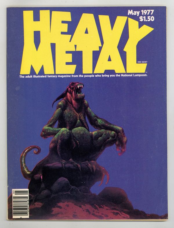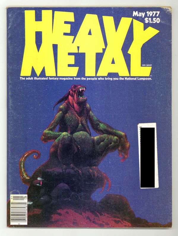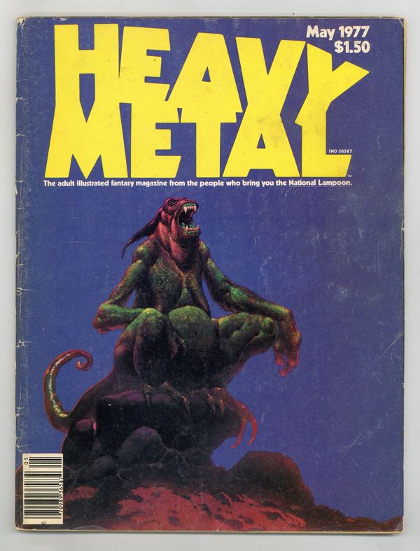 Published May 1977 by HM Communications.$26.00Rich Corben, Moebius, & Bode art May 1977, issue 2. Dubbed "The adult illustrated fantasy magazine," Heavy Metal also publishes tales of horror, science fiction, and adventure. This second issue includes the following stories: MEAOBbIN MECRU by Tardi; The Adventures of Yriss by Druillet and Alexis; Sunpot by Vaughn Bodé; Agorn by Druillet; 1996 by Montellier; Den by Richard Corben; Age of Ages by Rubington; Conquering Armies by Dionnet and Gal; Roger by Locquet and Souchu; The Star-Death of Margaret Omali by James Tiptree Jr.; Virgo by Caza; Harzak by Moebius; and Festival by Picaret and Baret. Cover art by Moebius. Cover price $1.50.