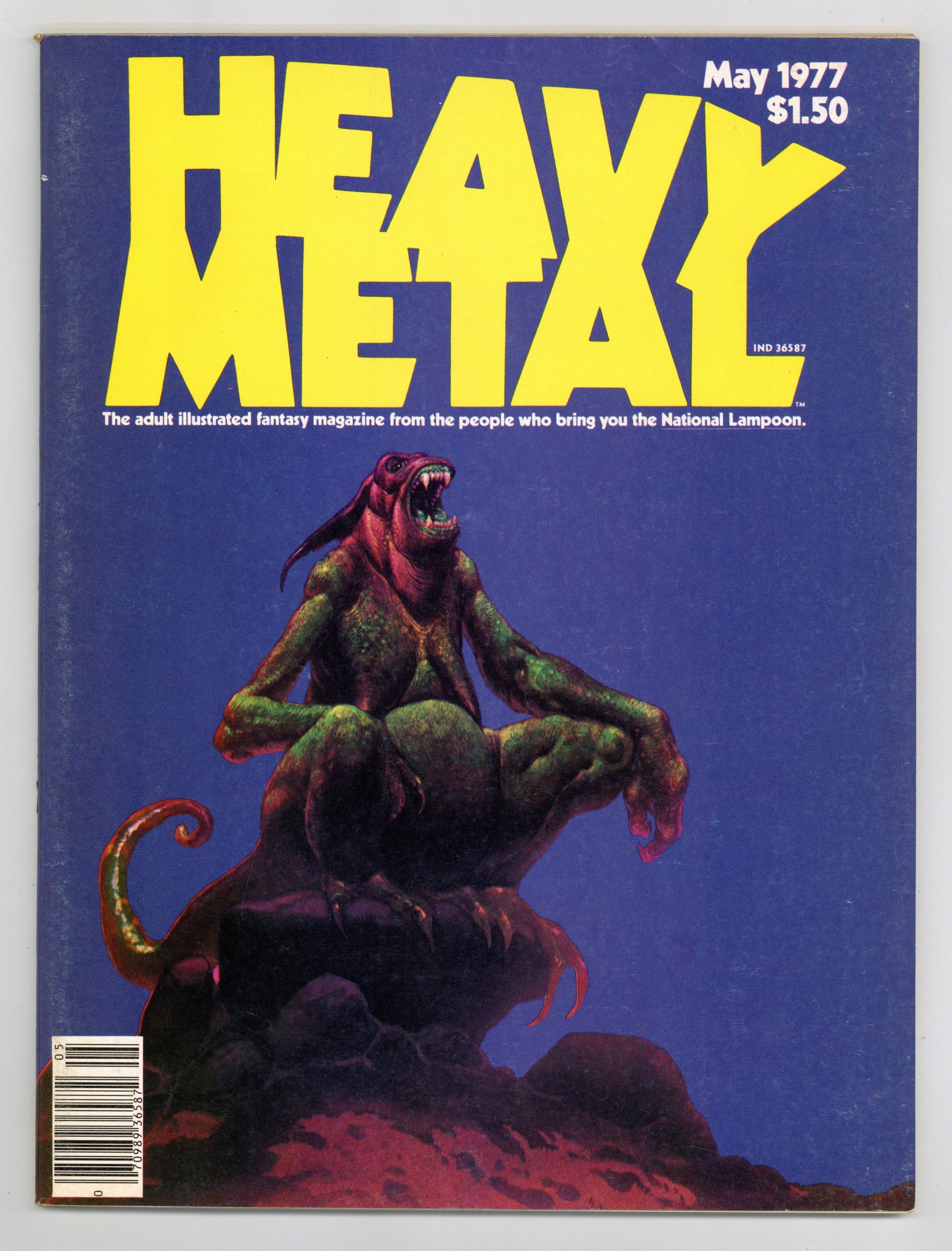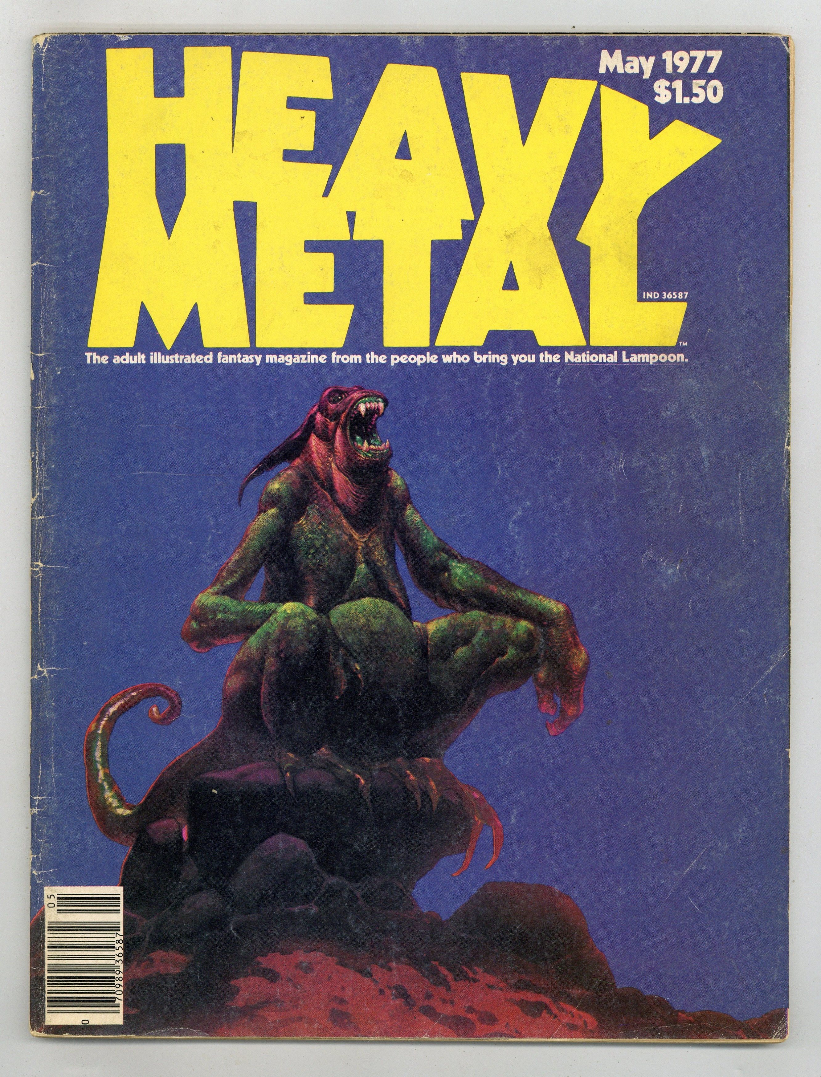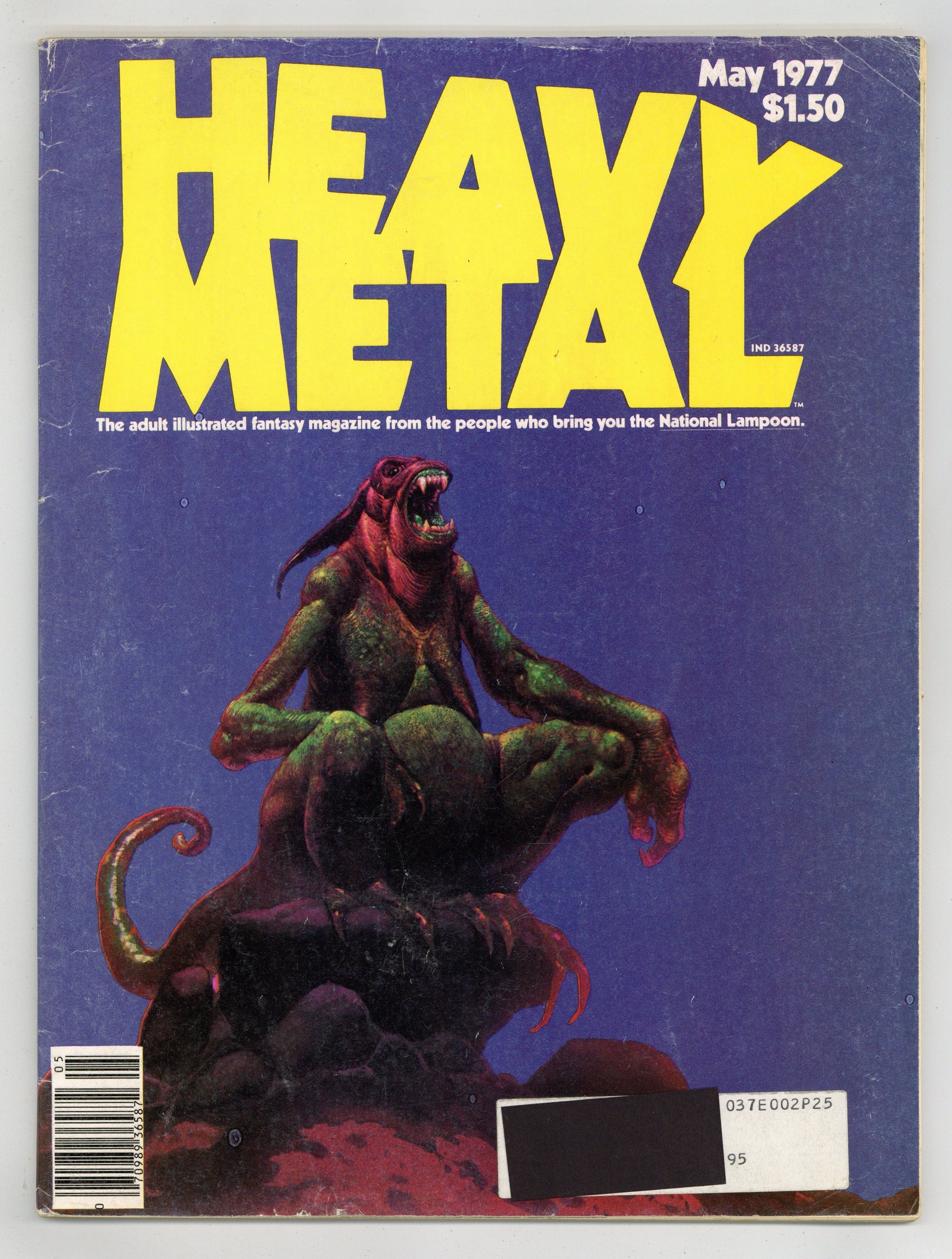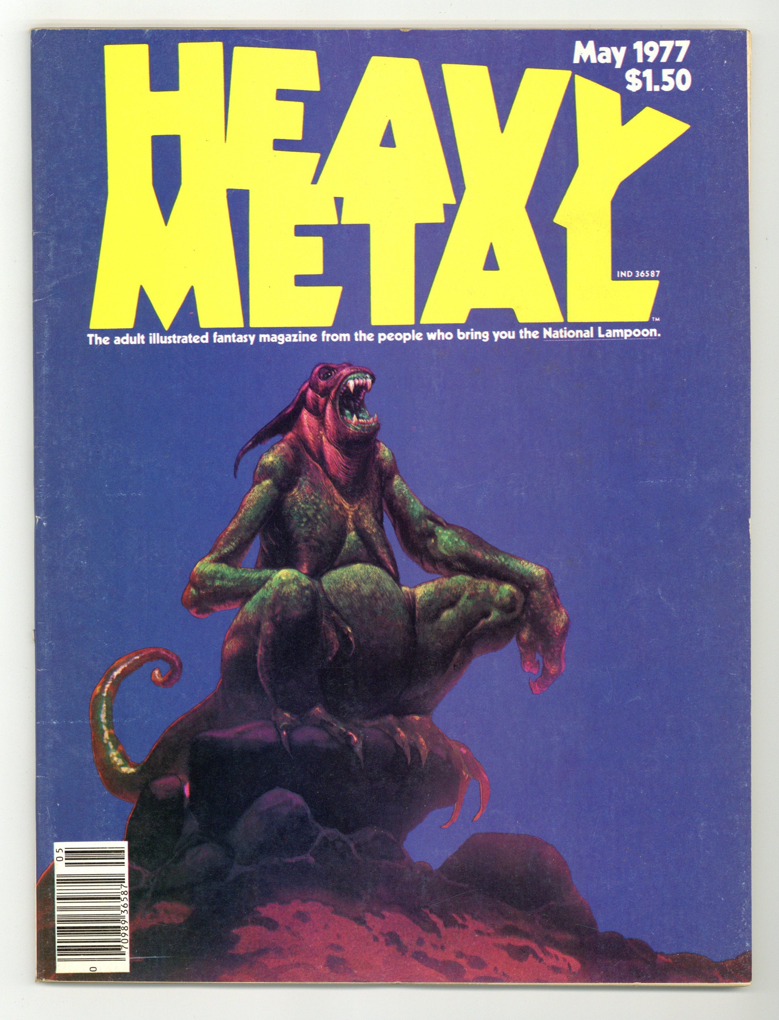 Published May 1977 by HM Communications.$28.00Rich Corben, Moebius, & Bode art May 1977, issue 2. Dubbed "The adult illustrated fantasy magazine," Heavy Metal also publishes tales of horror, science fiction, and adventure. This second issue includes the following stories: MEAOBbIN MECRU by Tardi; The Adventures of Yriss by Druillet and Alexis; Sunpot by Vaughn Bodé; Agorn by Druillet; 1996 by Montellier; Den by Richard Corben; Age of Ages by Rubington; Conquering Armies by Dionnet and Gal; Roger by Locquet and Souchu; The Star-Death of Margaret Omali by James Tiptree Jr.; Virgo by Caza; Harzak by Moebius; and Festival by Picaret and Baret. Cover art by Moebius. Cover price $1.50.
