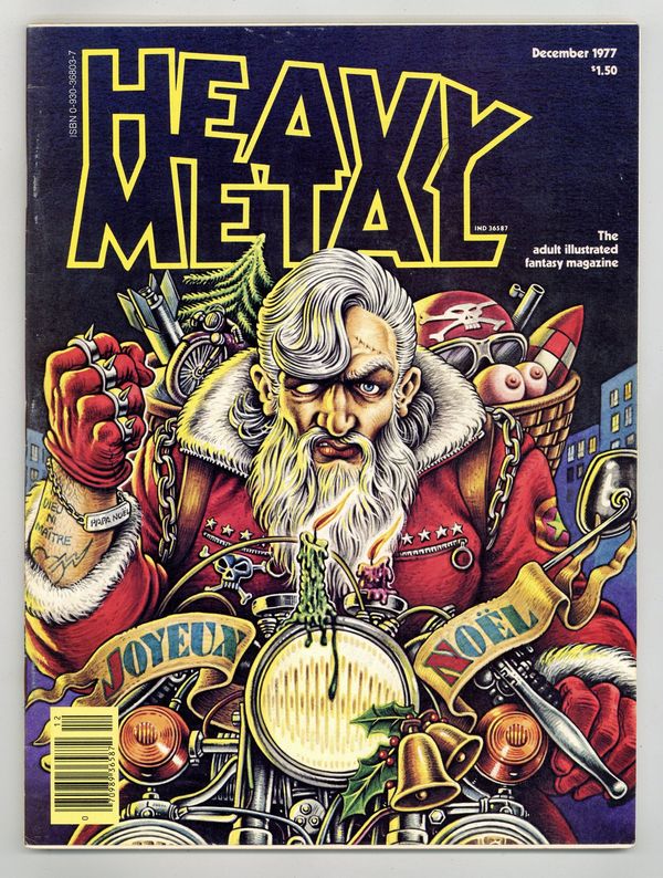 The adult illustrated fantasy magazine. Cover art by Jean Sole. Untitled Den story, script and art by Richard Corben. Untitled Vuzz story, script and art by Philippe Druillet. Telefield, script and art by Sergio Macedo. Fortune's Fool!, script by Len Wein, art by Howard Chaykin. The Mauve Sideshow, script by Elisabeth Salomon [as Zha], art by Nicole Claveloux. Black Thursday, script and art by Jean Giraud [as Moebius]. One-page illustration by Howard Chaykin. Dec, 1977, issue 9. 180 pgs. Cover price $1.50. Cover price $1.50.