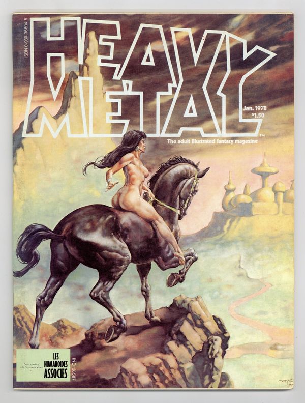 The adult illustrated fantasy magazine. Cover art by Val Mayerik. Ulysses, script by Jacques Lob (adaptation), art by Georges Pichard; An extremely liberal adaptation of Homer. The Time Warp, script and art by Serge Clerc. Talapalca, script and art by Dominique He. Untitled Den story, script and art by Richard Corben. Fifth Episode: The Major Disappears--The Airtight Garage Of Jerry Cornelius, script and art by Jean Giraud [as Moebius]. Miss Heavy Metal 1978--Roberta calendar, art by James Meehan. 1996, script and art by Chantal Montellier. Conquering Armies, script by Jean-Pierre Dionnet, art by Jean-Claude Gal. A Rose for Ecclesiastes, script by Roger Zelazny, art by Gray Morrow. Jan, 1978, issue 10. 100 pgs. Cover price $1.50. Cover price $1.50.