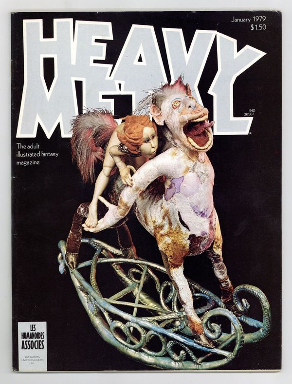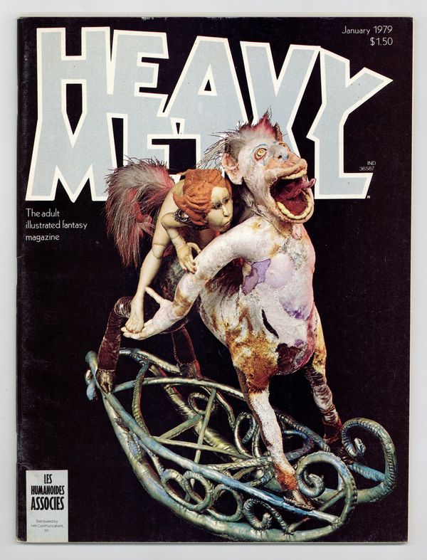 The adult illustrated fantasy magazine. Cover art by Jo Ellen Trilling. Sindbad in the Land of the Jinn--New Tales of the Arabian Nights, script by Jan Strnad, art by Richard Corben. Only Connect: The Tumor, script and art by Alias. The Airtight Garage of Jerry Cornelius, script and art by Jean Giraud [as Moebius]. Telefield (Episode Number 3), script and art by Sergio Macedo. Exterminator 17, script by Jean-Pierre Dionnet, art by Enki Bilal. Ultimate Negotiations, script and art by Enki Bilal. Miss Heavy Metal 1979 illustration by John Totleben. Station 34.728, script and art by Patrick Lesueur. Gail, script and art by Philippe Druillet. Split: The Little Space Pioneer, script and art by Jean Giraud [as Moebius]. Sense of Wonder..., script and art by Mark Wheatley. Exercise in Gold, script and art by Trina Robbins. So Beautiful and So Dangerous, script and art by Angus McKie. Jan, 1979, issue 22. 100 pgs. Cover price $1.50. Cover price $1.50.