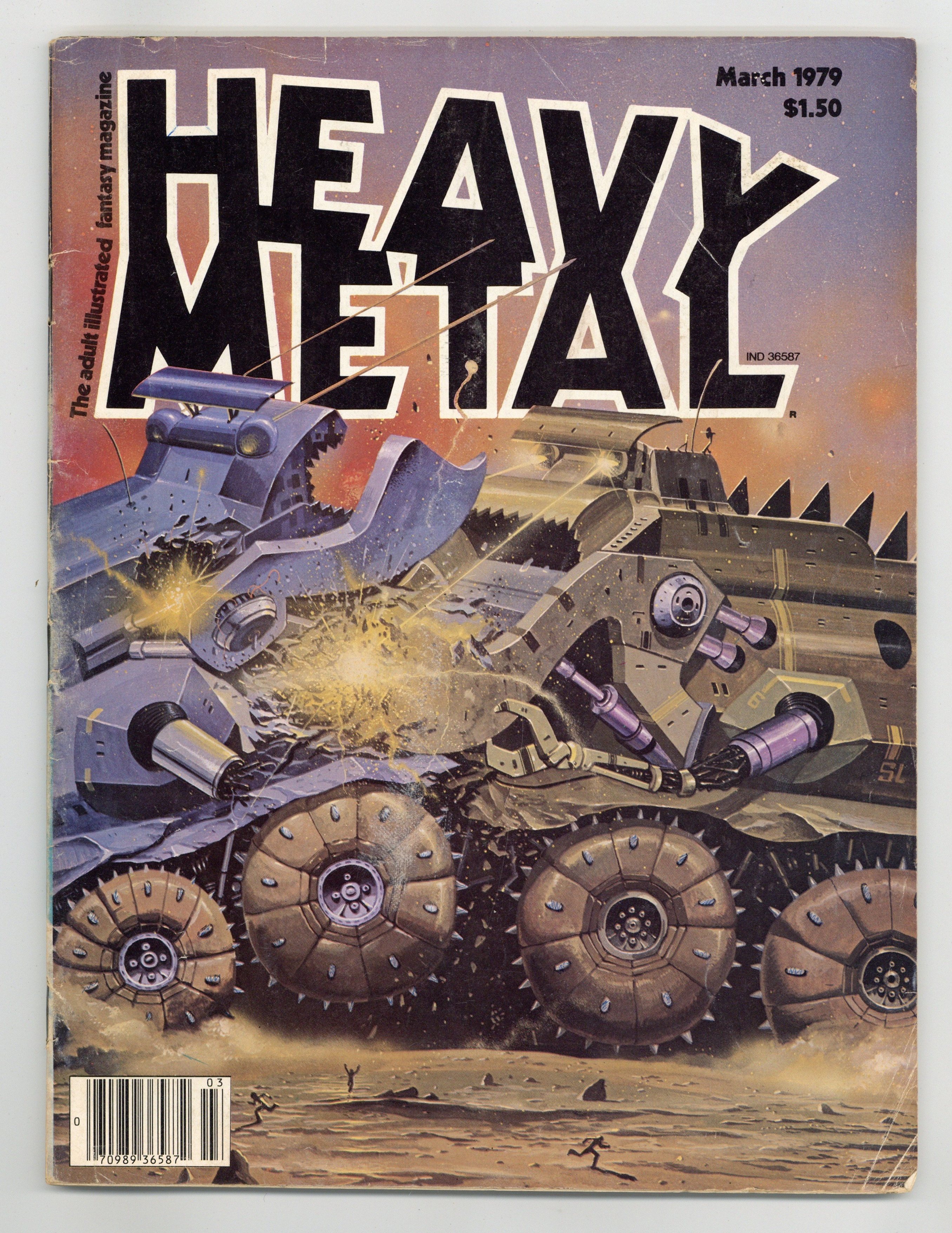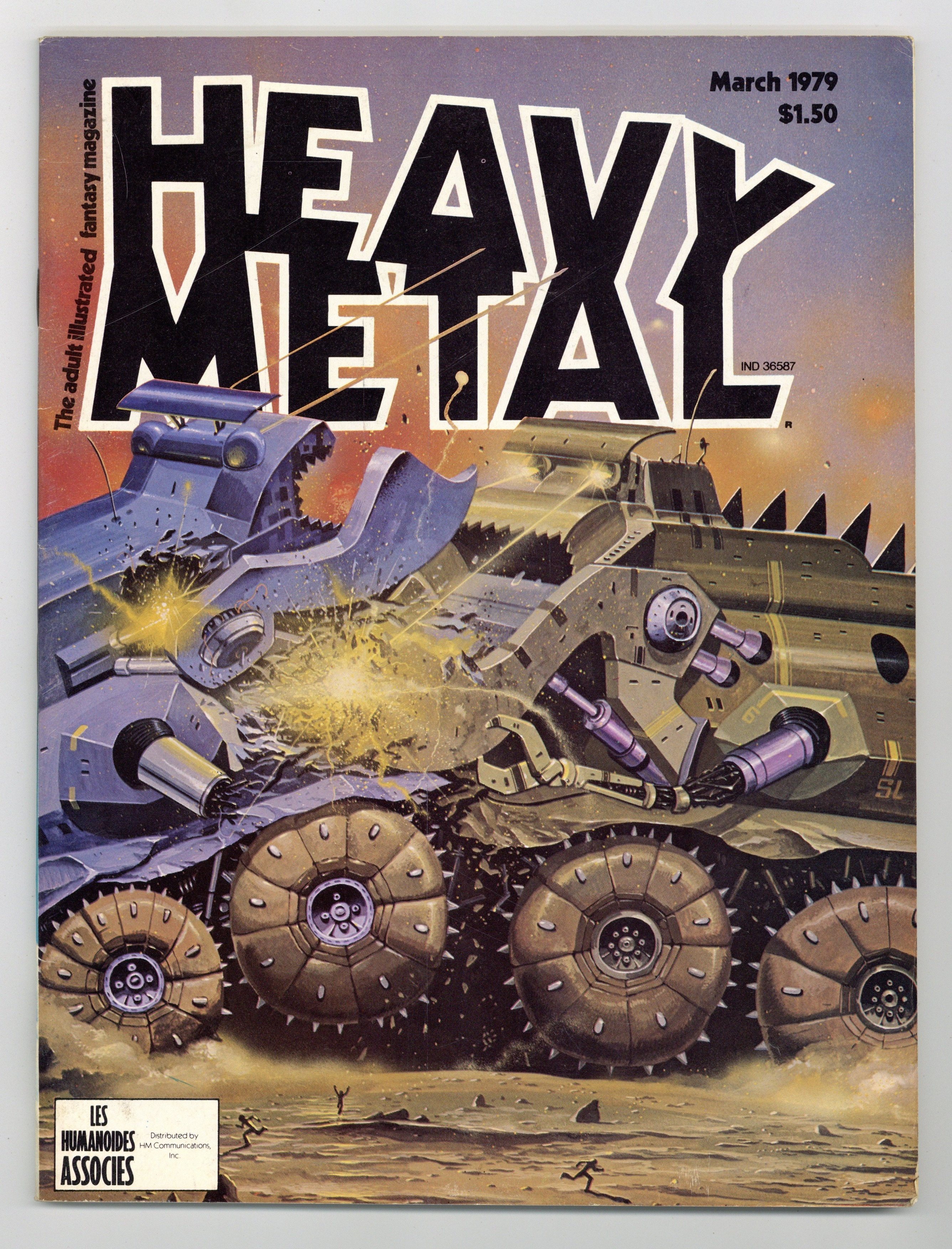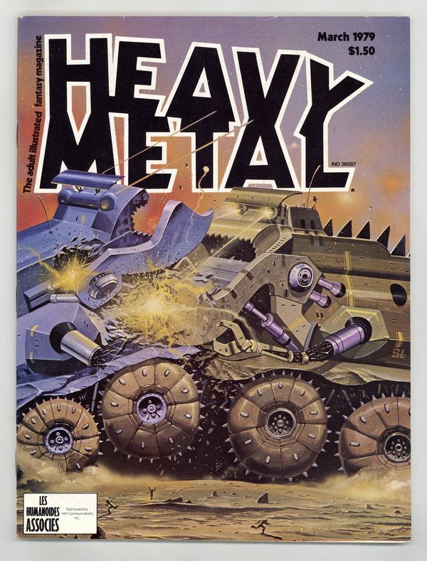 Published Mar 1979 by HM Communications.$12.00The adult illustrated fantasy magazine. Cover art by Angus McKie. Sindbad in the Land of the Jinn--New Tales of the Arabian Nights, script by Jan Strnad, art by Richard Corben. The Airtight Garage of Jerry Cornelius, script and art by Jean Giraud [as Moebius]. Rastakskoy, script and art by Malskoy. The Stars My Destination text story, script by Alfred Bester, art by Howard Chaykin. A Mass for the Dead, script and art by Jean-Claude Pertuzé. Flop Sweat text story, script by Harlan Ellison, art by Tom Barber. The Great Trap, script and art by Denis Sire. Starcrown text story, script by John Pocsik, art by Gil Kane and C. Smith. Exterminator 17, script by Jean-Pierre Dionnet, art by Enki Bilal. So Beautiful and So Dangerous, script and art by Angus McKie. 1996, script and art by Chantal Montellier. March, 1979, issue 24. 100 pgs. Cover price $1.50. Cover price $1.50.