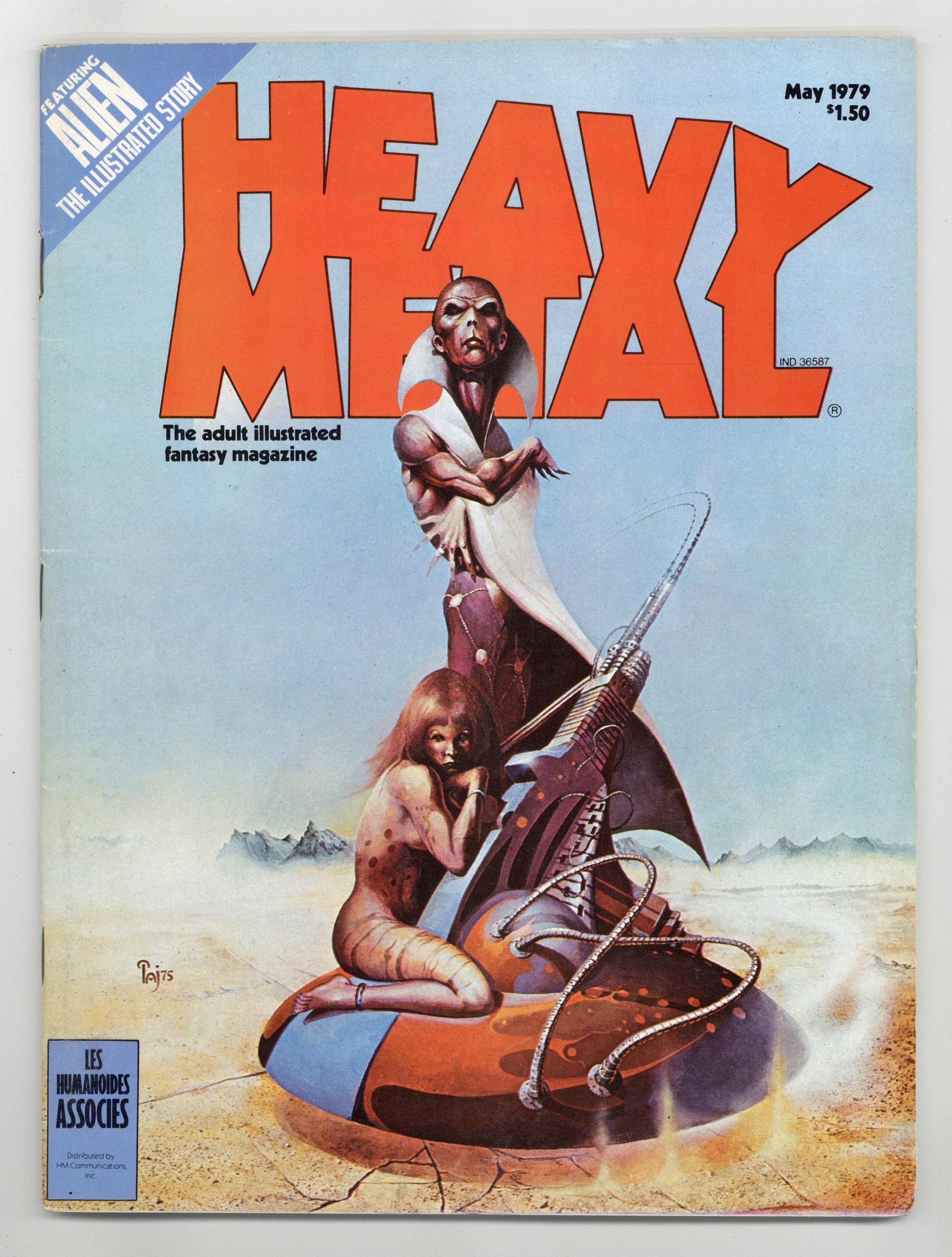 Published May 1979 by HM Communications.$16.00Angus McKie cover, Corben, Moebius, Kane, Simonson, and Rogers art May 1979, issue 26. Dubbed "The adult illustrated fantasy magazine," Heavy Metal also publishes tales of horror, science fiction, and adventure. This 26th issue includes the following stories: Born Again by Rick Veitch; Blast Bartleby by John Workman; The New Tales of the Arabian Nights, Sinbad in the Land of Jinn by Richard Corben and Jan Strnad; Alien by Walt Simonson and Archie Goodwin; The Airtight Garage of Jerry Cornelius by Moebius; Starcrown by John Pocsik, Gil Kane, and The Bruce Jones Studio; Pluto Kadota by James Cherry; The Entropics by Marshall Rogers and Mark Arnold; Spies on Pluto by Petillion; The Proposed Architect by Ben Katchor; Roger in the Womb by Al Sarrantonio and Roger Garland; Eight Belles, Amora by Gray Morrow; Only Connect Lifestyles by Alias; The Last Day by Dave Manak; Night Angels by Paul Abrams; Ah! The Pierrot by Vicente Alcazar; and Dancin' by Druillet. Cover art by Peter Andrew Jones. Cover price $1.50.