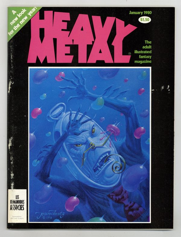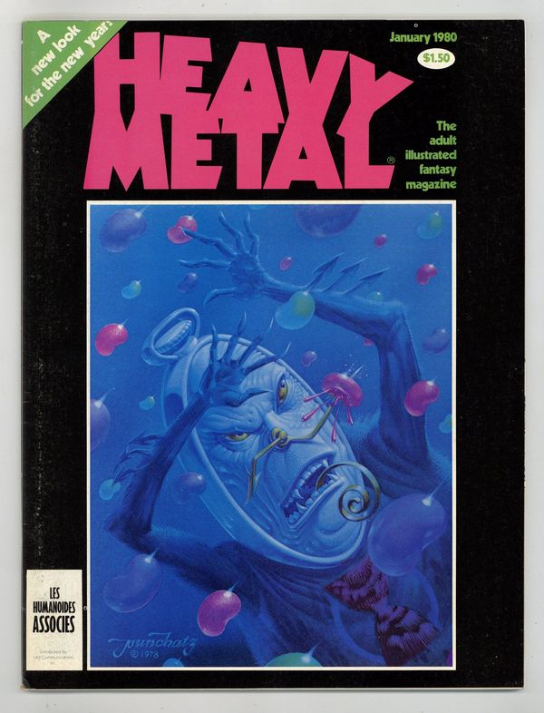 Published Jan 1980 by HM Communications.$9.30The adult illustrated fantasy magazine. Cover art by Don Ivan Punchatz. Michael William Kaluta contents page and intro art. The Story of Rowlf, script and art by Richard Corben. The Pause That Refreshes, script and art by Val Mayerik. Womb with a View, script and art by Dan Steffan. Exit/In, script and art by Neal McPheeters. Paradise Lost, script by John Milto and Terrance Lindall (adaptation), art by Terrance Lindall. Space Race 3000--Stellar Journals, script and art by Karl B. Kofoed. Zooks!, script and art by Vaughn Bode. The Swords of Heaven, the Flowers of Hell--Gallery Section: New Books, script and art by Howard Chaykin. Food for the Children, script and art by Arthur Suydam. Alien Comix Presents, script and art by Rick Veitch. Shoot Out at the Fantasy Factory, script by Trey Aven, art by Stephen Hill. Hive, script and art by Paul Kirchner. Jan, 1980, issue 34. 100 pgs. Cover price $1.50. Cover price $1.50.