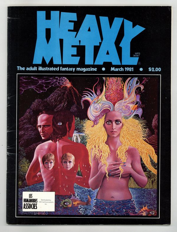 AThe adult illustrated fantasy magazine. Cover art by Abdul Mati Klarwein. Bloodstar, script by Robert E. Howard, John Jakes (adaptation), and John Pocsik (adaptation), art by Richard Corben. What Is Reality, Papa?, script by Christian Godard, art by Julio Ribera. Edward In Love, script and art by Dominique He. Red, script and art by Matt Howarth. Fear Not Your Enemies article by Harlan Ellison. Salammbo, script and art by Philippe Druillet. The Ambassador of the Shadows featuring Valerian: Time-Space Agent, script by Pierre Christin, art by J. C. Mezieres. Tex Arcana, script and art by John Findley. The Man with the Suitcase, script and art by Jean Teule. Milady 3000: The Prince of Equilibrium and a Serene Galaxy, script and art by Roberto Raviola [as Magnus]. Rock Opera, script and art by Rod Kierkegaard, Jr. March, 1981, issue 48. 100 pgs. Cover price $2.00. Cover price $2.00.