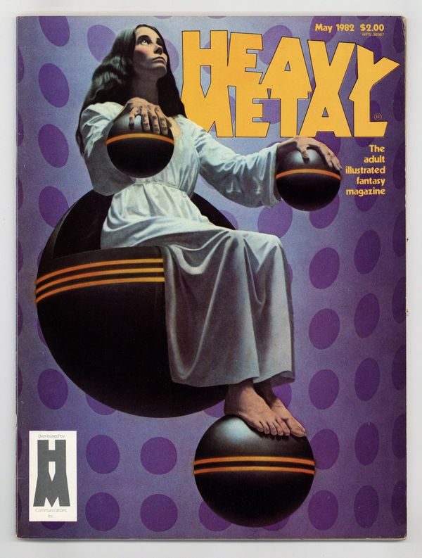 Published May 1982 by HM Communications.$10.00Front cover by Richard Cohen & John Townley. Back cover by Moebius. The Incal Light by Jodorowsky & Moebius. The Third Sexual Revolution: Transcendant Eroticism in the Eighties by David Black. Den II by Richard Corben. Nova II by Luis Garcia. The Gallery: The Art of De Es Schwertberger by Jeff Goldberg. Superhero by Angus McKie & Alan Daniels. At the Middle of Cymbiola by Renard & Schuiten. Yrangel by Druiller. Zora by Fernando Fernandez. Exiled by Caza. Shakespeare for Americans by Walter Simonson & Howard Chaykin. Sixteen and Vanilla by Ted White, adapted by David Bischoff, Val Lakey & Artifact. Mr. Dull by Bill Plympton. I'm Age by Jeff Jones. The Black Knight by Eberoni. The Voyage of Those Forgotten by Christin & Bilal. The Mercenary by Segrelles. Rock Opera by Rod Kierkegaard, Jr. The Bus by Paul Kirchner. May, 1982, issue 62. Cover price $2.00.
