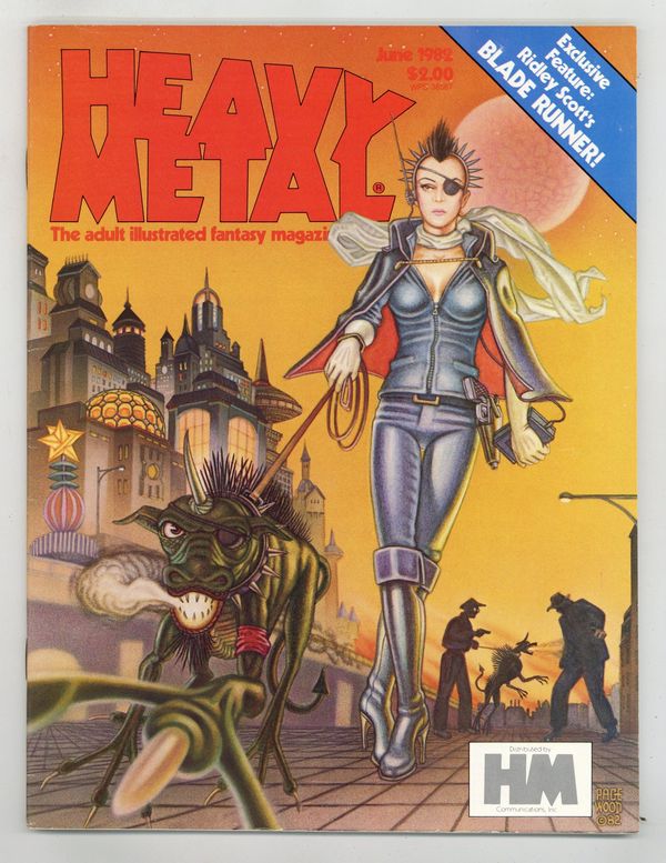 Published Jun 1982 by HM Communications.$13.50The adult illustrated fantasy magazine. Cover art by Page Wood. Philip K. Dick (1928-1982) article. Tough Guys: A Man Called Hammett article. Emperoratrix--The Incal Light, script by Alexandro Jodorowsky, art by Jean Giraud (as Moebius). Den II, script and art by Richard Corben. At the Middle of Cymbiola, script by Claude Renard, art by Francois Schuiten. I'm Age, script and art by Jeff Jones (one page). Blade Runner: This Is the City article. Little Star in New York, script and art by Ceesepe. A History of America, script and art by Robert Crumb. The Messerschmitt Attack, script and art by Anthony Scibelli. Concorde, script and art by Philippe Cazaumayou (as Caza). The Gladiators, script and art by Al Voss. Nova 2, script and art by Luis Garcia. H.R. Giger's New York City gallery. The Voyage of Those Forgotten, script by Pierre Christin, art by Enki Bilal. Back & Forth, script and art by Marc Hempel (one page). Zora, script and art by Fernando Fernandez. Yragael, script and art by Philippe Druillet. Rock Opera, script and art by Rod Kierkegaard, Jr. June, 1982, issue 63. 100 pgs. Cover price $2.00. Cover price $2.00.