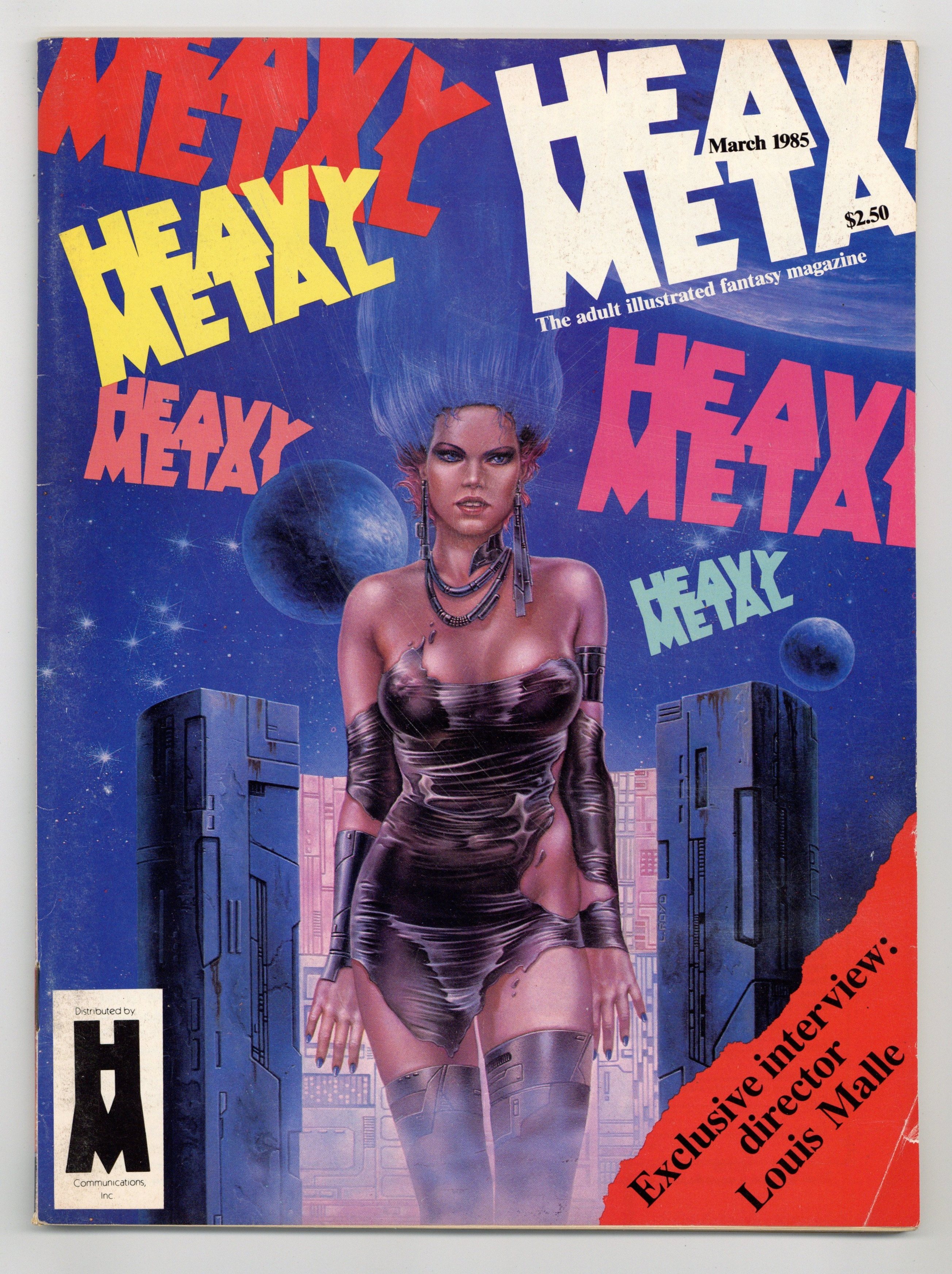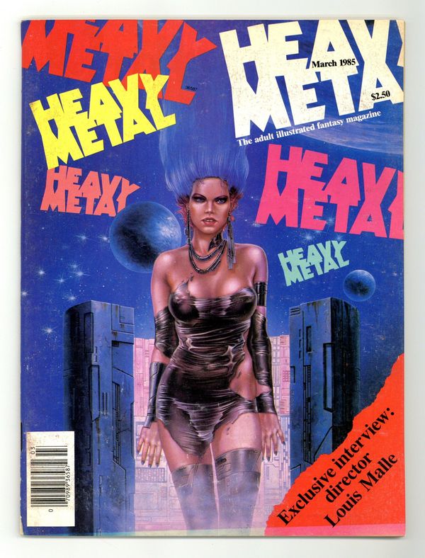 The adult illustrated fantasy magazine. Cover art by Luis Royo. The Hunting Party, script by Pierre Christin, art by Enki Bilal. Rebel, script by Pepe Moreno, Kenny Sylvester (co-script), Pete Ciccone (co-script), and Rob Hingley (co-script), art by Pepe Moreno. Bone Voyage starring El Borbah, script and art by Charles Burns. Rock Opera, script and art by Rod Kierkegaard, Jr. Meets the Toast of Europe starring Tex Arcana, script and art by John Findley. Interview with Louis Malle. An Author in Search of Six Characters, script and art by Milo Manara. The Walls of Samaris, script by Benoit Peeters, art by Francois Schuiten. The Stranger, script and art by Herikberto. Bourbon Thret: The Parochial Terror!, script by Um Stenstrum, Patricia Wong, and Geoffrey Darrow, art by Geoffrey Darrow. March, 1985, issue 96. 100 pgs. Cover price $2.50. Cover price $2.50.