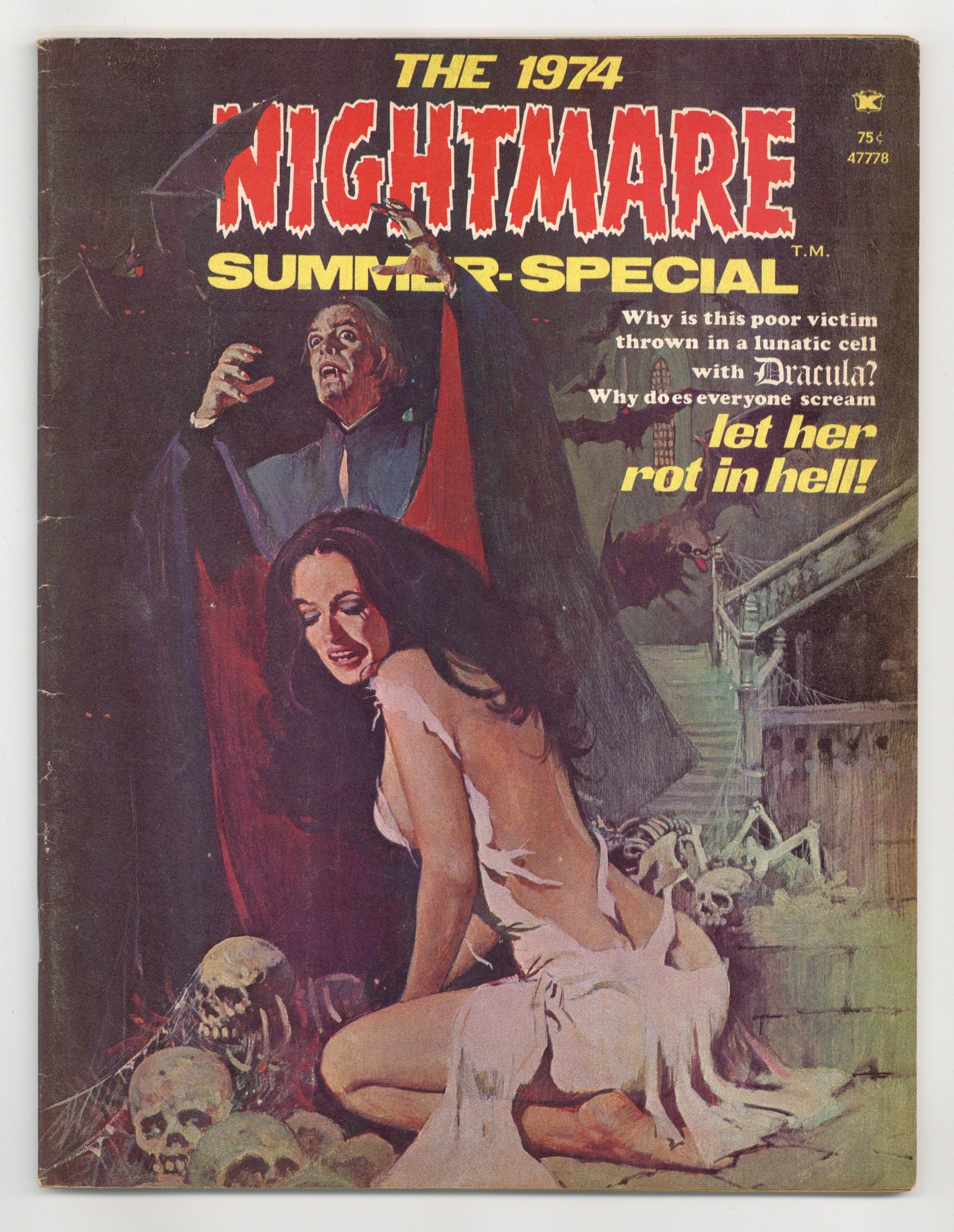 $27.00Cover art by Jose Mirelles. Let Her Rot In Hell, script by Al Hewetson, art by Jose Cardona. Valley Of Blood, script by Charles McNaughton, art by Jack Katz. The Cosmos Strain, script and art by Michael Kaluta (script credited to Steve Stern). Comes The Stalking Monster!, script by Larry Todd, pencils by Tom Sutton (as David Cook), inks by Syd Shores (as David Cook). Sleep, script and art by Jeff Jones (script credited to Steve Stern). Corpse By Computer, script by Robert Kanigher, art by Doug Wildey. Sand Castles, script by Ed Fedory, art by Pablo Marcos. 68 pgs. $0.75. Cover price $0.75.