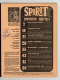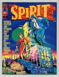 Published by Warren for the first 16 issues (and by Kitchen Sink beginning with 17), The Spirit reprints Will Eisner's groundbreaking work from the 1940s and '50s. Cover art by Will Eisner. Letters of comment from Alex Toth, Wally Wood, and Bob Bloch. "An Interview with Will Eisner": article by Joe Siegel. "Heel Scalloppini," script and pencils by Will Eisner, inks by Will Eisner and Jerry Grandenetti; Fog laid heavy over Central City…heavy as the hearts that dwelt therein; Elections were over, a heel had won; And something in the air smelled fishy! "Powder Pouf," script and pencils by Will Eisner, inks by Will Eisner and Jerry Grandenetti; Her name was Powder, and like her namesake, she was deadly and explosive…ready to entrap anyone in her treacherous web of crime; Even The Spirit! "The Fallen Sparrow," script and pencils by Will Eisner, inks by Will Eisner and Jerry Grandenetti; Bleak had served his sentence; Now he was free…free to rush into the arms of his childhood sweetheart; He didn't know that she was as crooked as he! "The Tragedy of Merry Andrew," script and pencils by Will Eisner, inks by Will Eisner and Jerry Grandenetti; There's a tale of a man with a blow, mighty enough to lay The Spirit low!; But how and why could this be, when Merry Andrew was only five foot three? "Wanted: Mortimer J. Titmouse," script and pencils by Will Eisner, inks by Will Eisner and Jerry Grandenetti; Mortimer was a janitor; And he had a big secret; He claimed he could build a bomb capable of destroying the world. "The O'Dolan," script and pencils by Will Eisner, inks by Will Eisner and Jerry Grandenetti; They say there's a treasure in the haunted O'Dolan house…a treasure guarded by ghosts! "UFO," script and pencils by Will Eisner, inks by Will Eisner and Jerry Grandenetti; Down from the sky it floated... straight into the Central City junkyard; Out came a strange little man, in search of an aspiring actor; An actor who claimed he saw men from Mars! "Silken Floss M.D.," script and pencils by Will Eisner, inks by Will Eisner and Jerry Grandenetti. 76 pgs., B&W. Cover price $1.00.