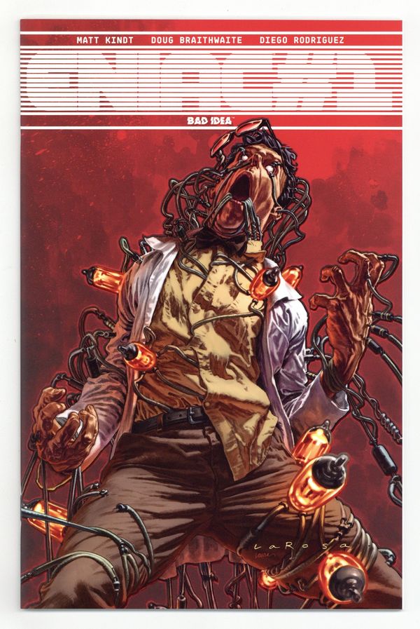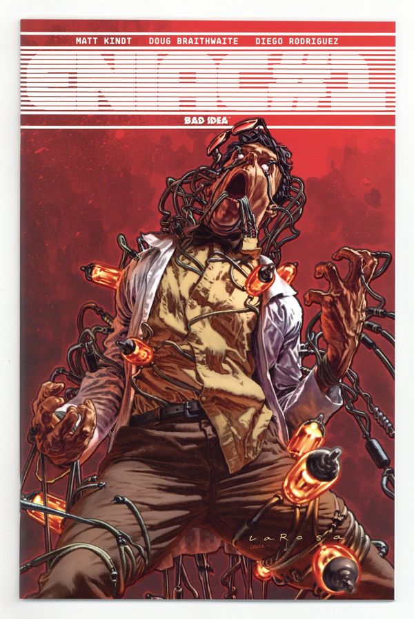 Story by Matt Kindt. Art by Doug Braithwaite and Diego Rodriguez. Cover by Lewis LaRosa and Laura Martin. Back cover by Matt Kindt. Seventy-seven years ago, the United States unlocked the key to defeating the Axis powers, but, in their desperation to end the war, created a far more powerful threat: ENIAC (Electronic Numerator Integrator and Computer), the worlds first supercomputer. ENIAC's calculations proved vital to turning the tide against Germany and Japan – until it ordered the second atomic bomb to be dropped on Nagasaki without any human order or approval. America had inadvertently created the first artificial intelligence without ever realizing the full extent of its abilities...or its ambitions. For the more than 50 years that followed, ENIAC manipulated global affairs from the shadows, waging a cold war that pitted spy against spy, nation against nation...until it went dark and disappeared from view. Now, years later, an encrypted countdown has just been detected in Earth's satellite network and mankind only has three days left before ENIAC executes its endgame. With few options and even less time, the Secretary of Defense has just given two covert operatives the most important mission in human history: kill ENIAC…before it kills us. 52 pages, PC/PB&W. Cover price $3.99.