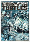 1st printing. Main print run edition - Letters of 'Laird's Photo' in the background of cover are almost entirely blue. The original series that introduced the Turtles to the world. When Master Splinter is kidnapped, the Turtles must ask their new ally April O'Neil for help to find him. Story, art and cover by Kevin Eastman & Peter Laird. Black and white; 44 pages. Cover price $1.50.