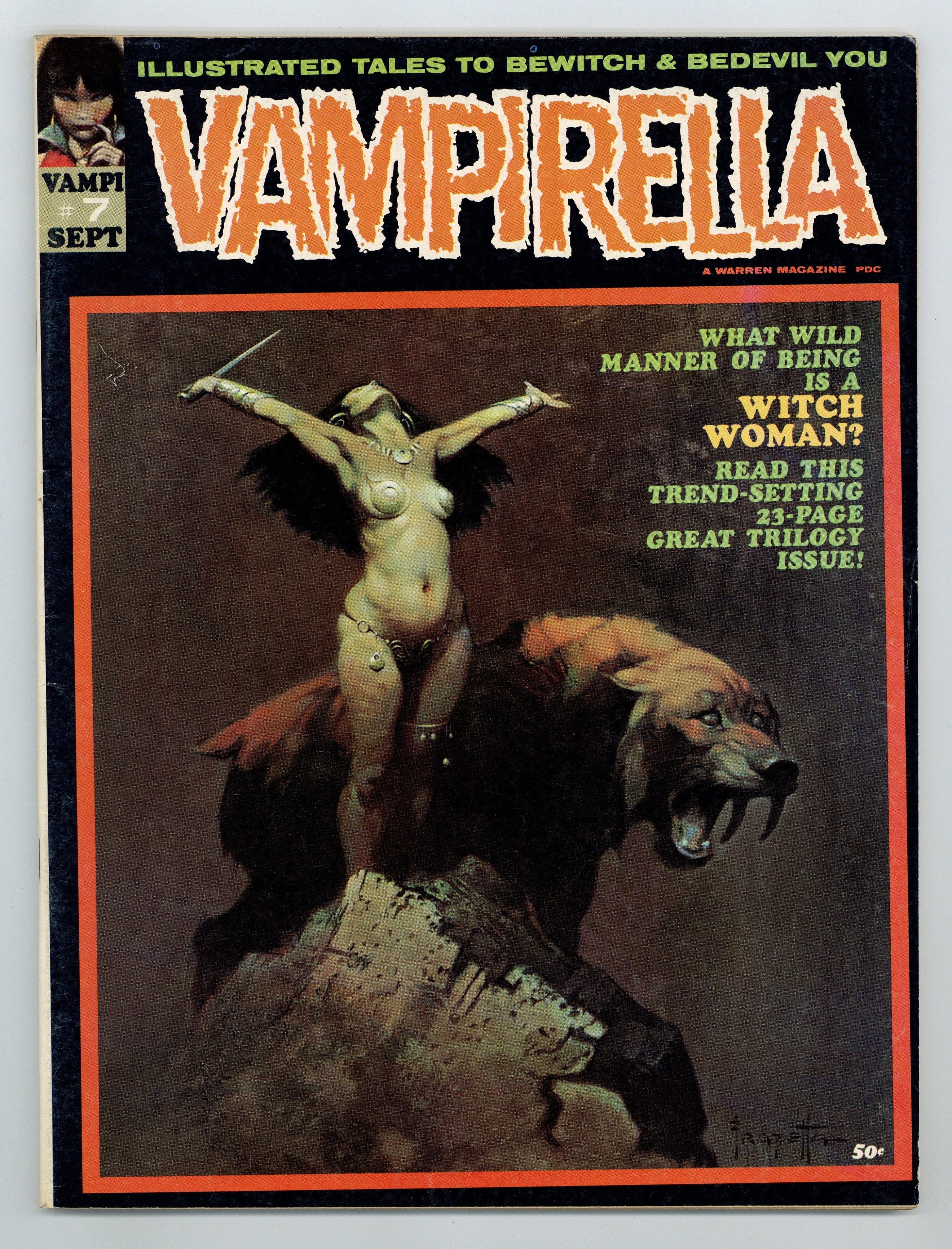 Stories in this issue include: "Prologue: Three Witches"; "The White Witch"; "The Mind Witch"; "The Black Witch"; "Epilogue: Three Witches"; "Plague of the Wolfe"; "Terror Test"; "The Survivor"; and "The Collection Creation." Written by Nicola Cuti, Doug Moench, Buddy Saunders (owner of Lone Star Comics!), and others. Also includes articles "An Editorial to the President of the United States and all the Members of Congress" by James Warren and "Why a Witch Trilogy" by Archie Goodwin, who becomes an associate editor with this issue. Cover art by Frank Frazetta. Cover price $0.50.