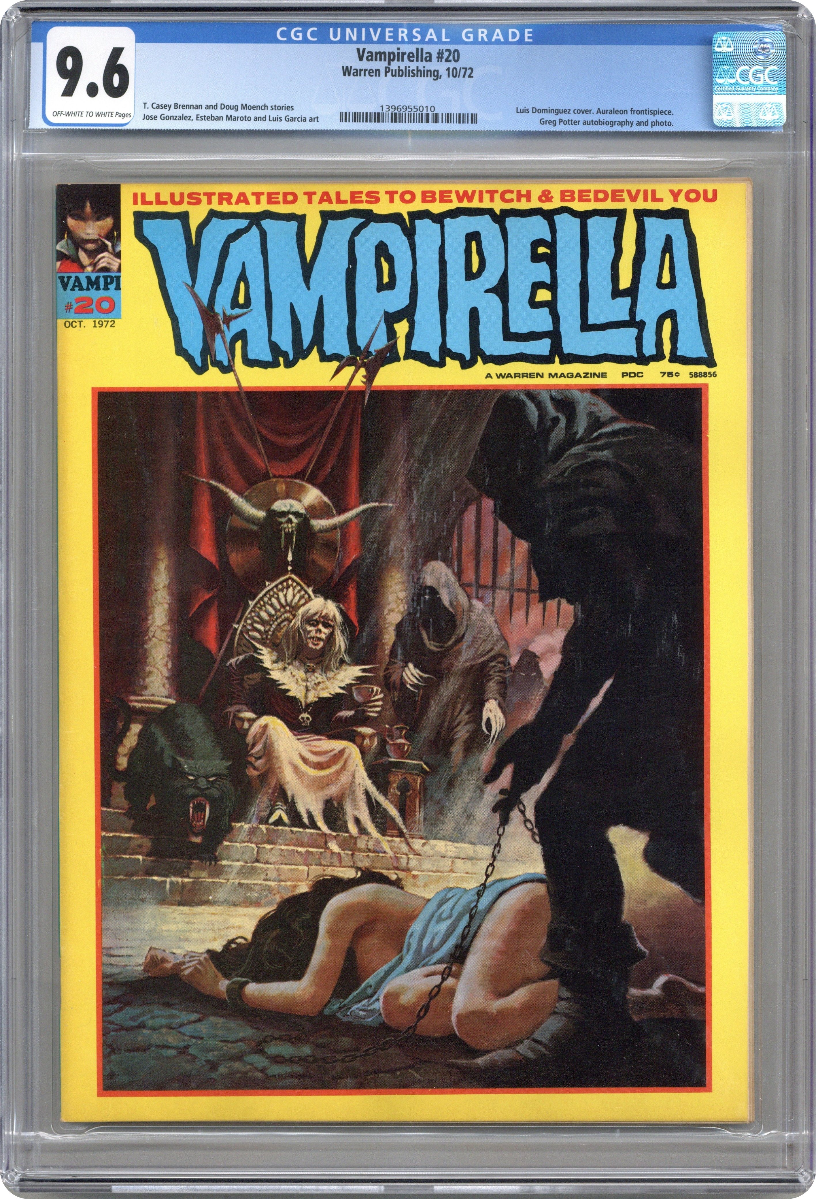 $22.50Stories in this issue include: "Vampi's Feary Tales: The Matrimonial Murder"; "When Wakes the Dead" (starring Vampirella and Dracula); "Gender Bender"; "Love is no Game"; "Eye Opener"; and "Vengeance, Brother, Vengeance." Written by T. Casey Brennan, Esteban Maroto, Douglas Moench, Martin Pasko, Greg Potter, and Steve Skeates. Art by Auraleon, Luis Dominguez, Luis Garcia, Jose Gonzales, Esteban Maroto. Includes "Vampi's Book Reviews." Cover art by Luis Dominguez. Cover price $1.00.
