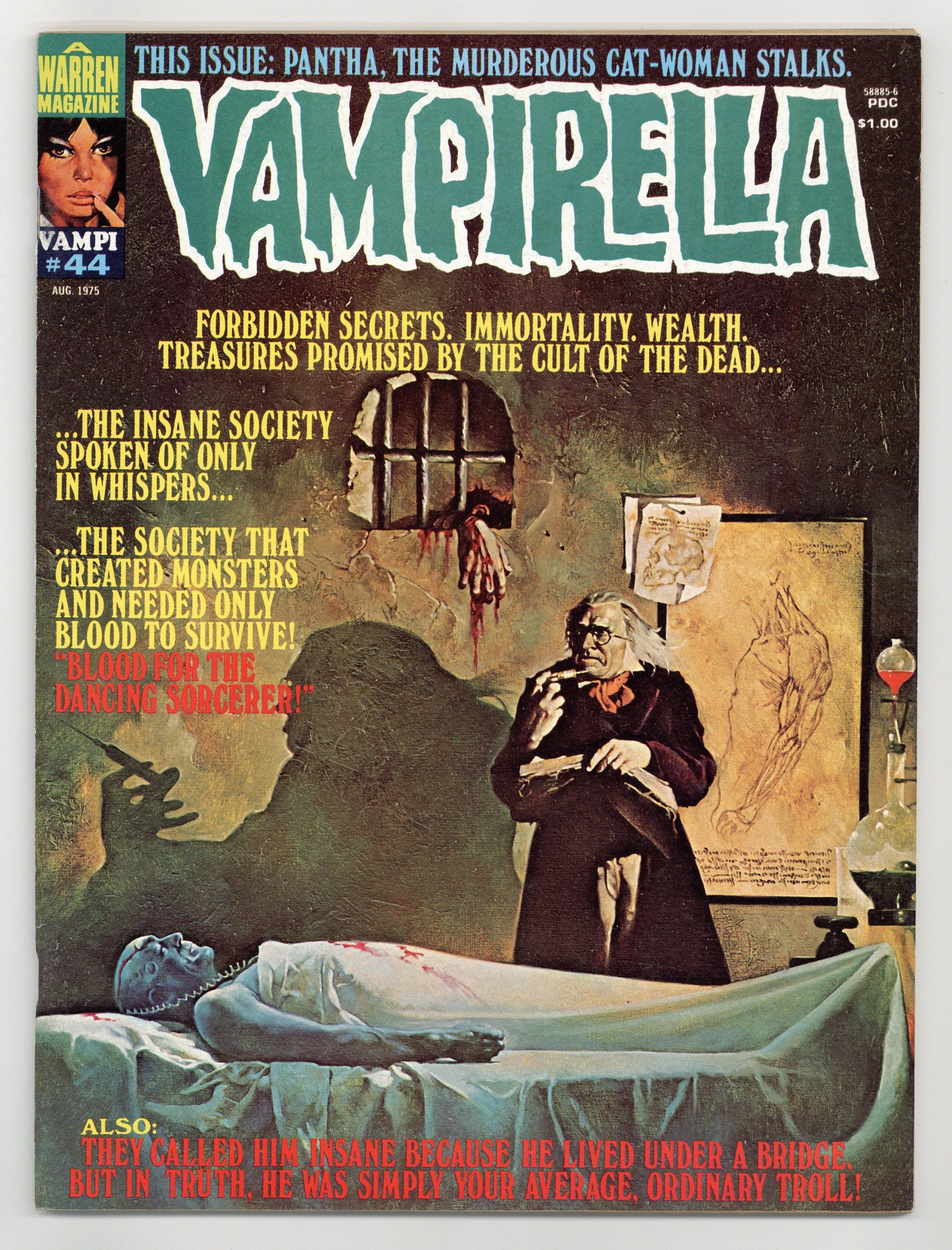 $14.75Stories in this issue include: "Vampirella: Sorcerer"; "Love Strip"; "Troll"; and "Pantha." Written by Gary Boudreau, Bill DuBay, and Budd Lewis. Art by Neal Adams, Auraleon, Luis Garcia, Jose Gonzalez, Jose Gonzalez, and Ramon Torrents. Includes inside cover art by Neal Adams. Includes an article on comic book art. Cover art by Manuel Sanjulian. Cover price $1.00.