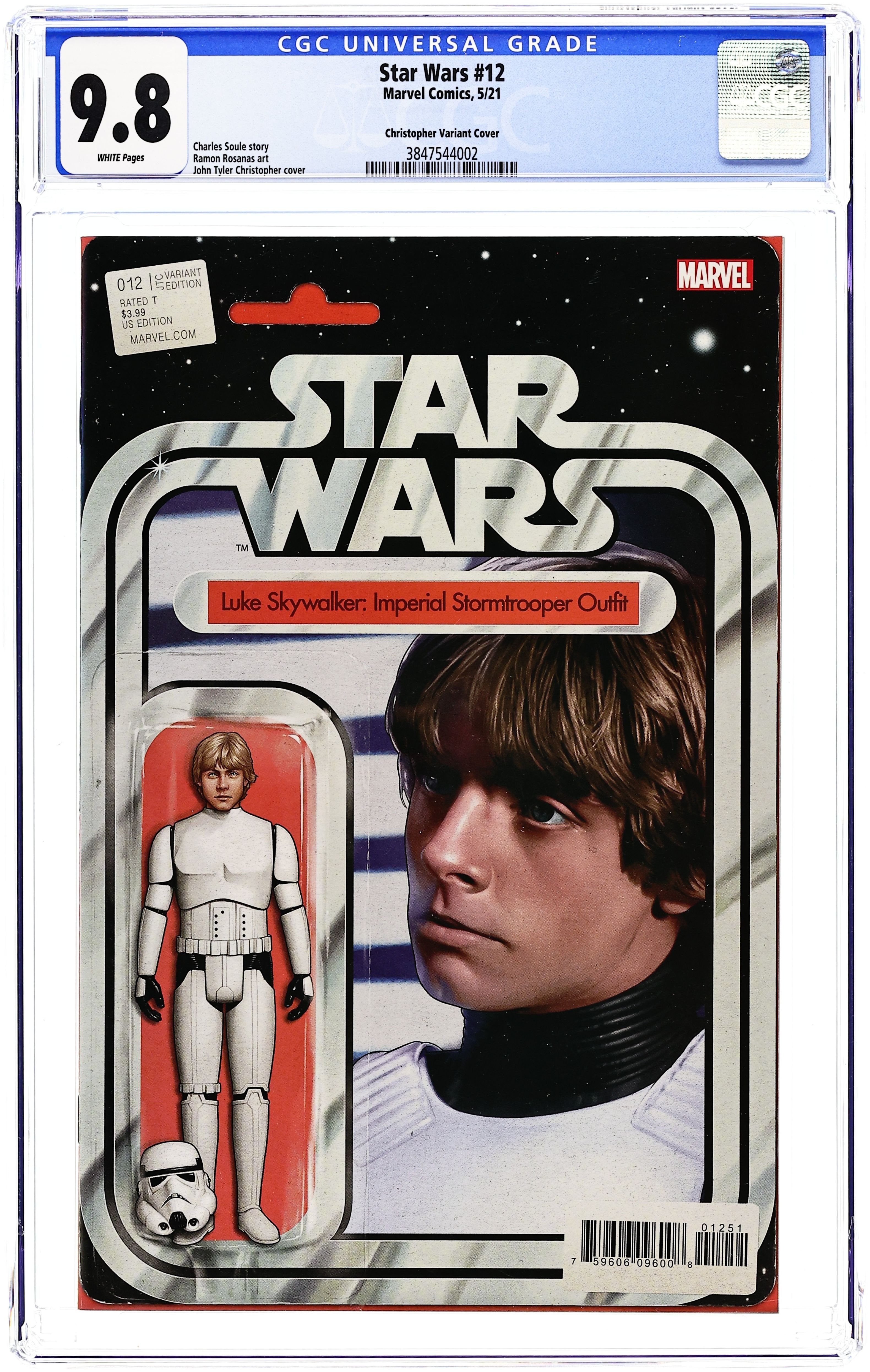 Luke Skywalker: Imperial Stormtrooper Outfit Action Figure variant cover by John Tyler Christopher - Limited to 3,000 copies. Written by Charles Soule. Art by Ramon Rosanas. REFLECTIONS ON THE LOST! LEIA ORGANA and KES DAMERON share stories of their lost loves! Learn how POE DAMERON'S parents met! Learn the real reason HAN SOLO is so important to THE REBELLION! 28 pages, full color. Rated T Cover price $3.99.