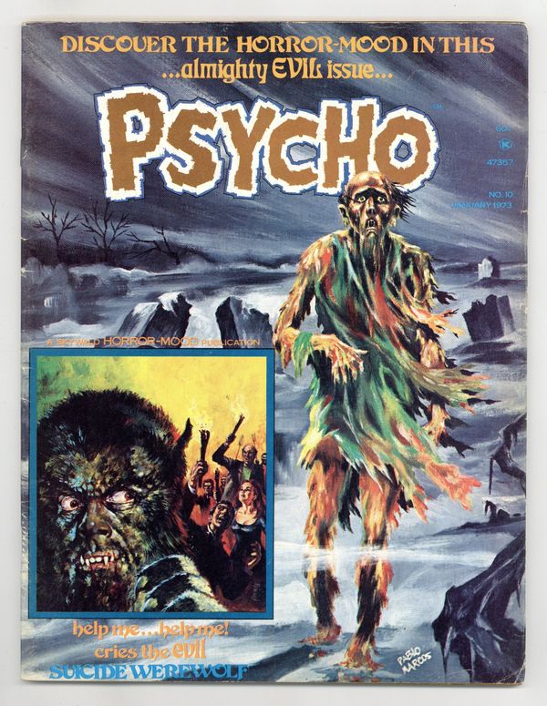 $12.50Includes cover pencils by Pablo Marcos, inks by Fernando; The Suicide Werewolf, script by Al Hewetson, art by Marcos; The Legend Of The Man-Macabre, script by Hewetson, art by Villanova; ...Peter Piper Picked A Peck Of Pickled Corpses..., script by Hewetson, art by Maelo Cintron; The Legend Of An 18th Century Gentleman: H. P. Lovecraft article by Hewetson; Ed Fedory bio; Even A Heap Can Die!, script by Hewetson, art by Marcos; The Transplant!!, script by Ed Fedory, art by Fernando Rubio; A Leering Look At The Frankenstein Monster...Karloff article by Hewetson; Tightrope To Nowhere, script by Hewetson, art by Juez Xirinius; and Frankenstein humor story by Hewetson, art by Maelo Cintron. 68 pgs. Cover price: $0.60. Cover price $0.60.