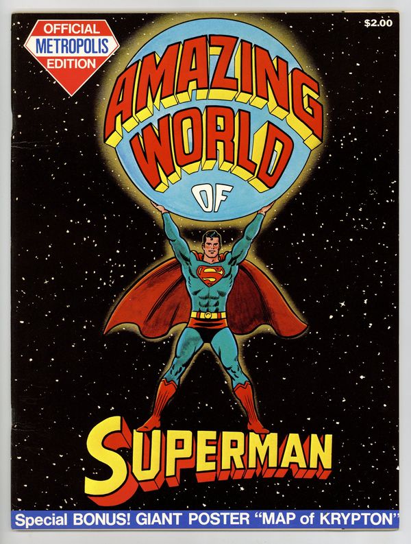 $23.00"Official Metropolis Edition"; Superman origin retold; Superboy reprint from issues 153 and 161 with Wally Wood inks. Includes a center-stapled 22 inch x 28 inch, full-color, Super-Sized illustrated map of Krypton suitable for framing. Also included: How to Draw Superman, Superman Family Portrait, How a Comic Magazine is Created (very intersting 10 page article with plenty of step-by-step pictures), info on Metropolis, Illinois and Superman Proclamation Day, the Superman Legend, Superman's Rogues' Gallery, The Secrets of Superman's Fortress, Important Dates in Superman's Life, Superman in the movies and on TV, and "Superman's Mission for President Kennedy!" Cover price $2.00.
