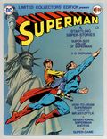 Tags: Treasury Sized Editions (part C38)$15.00Limited Collectors' Edition: Superman reprints. Neal Adams art (new?), plus Superman origin reprint by Curt Swan/Murphy Anderson. Includes War in Europe, Insurance Death Racket, The Men Who Had to Guard Superman, Lois Lanes Secret Helper (starring Krypto), The Case of the Lethal Letters. Superman puzzle. How to Draw Superman. A concept for Supermans future super-amusement park. Superman on Screen with photos. Superman 3D Diorama on back cover. 80 pgs. Size is 10 x 13-1/2" (about the size of a Life magazine). Cover price $1.00. Cover price $1.00.